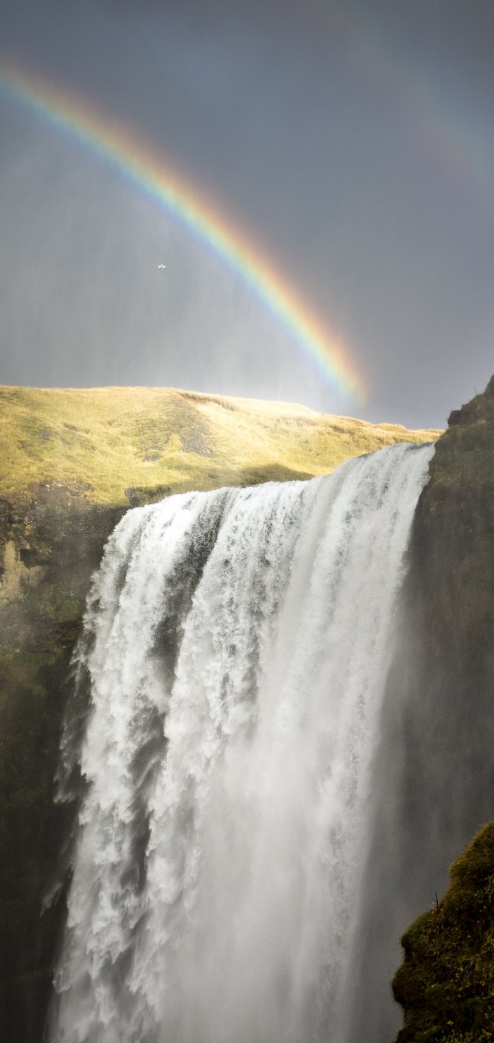 Обои: водопад Скоугафосс, Исландия, радуга - 720x1520