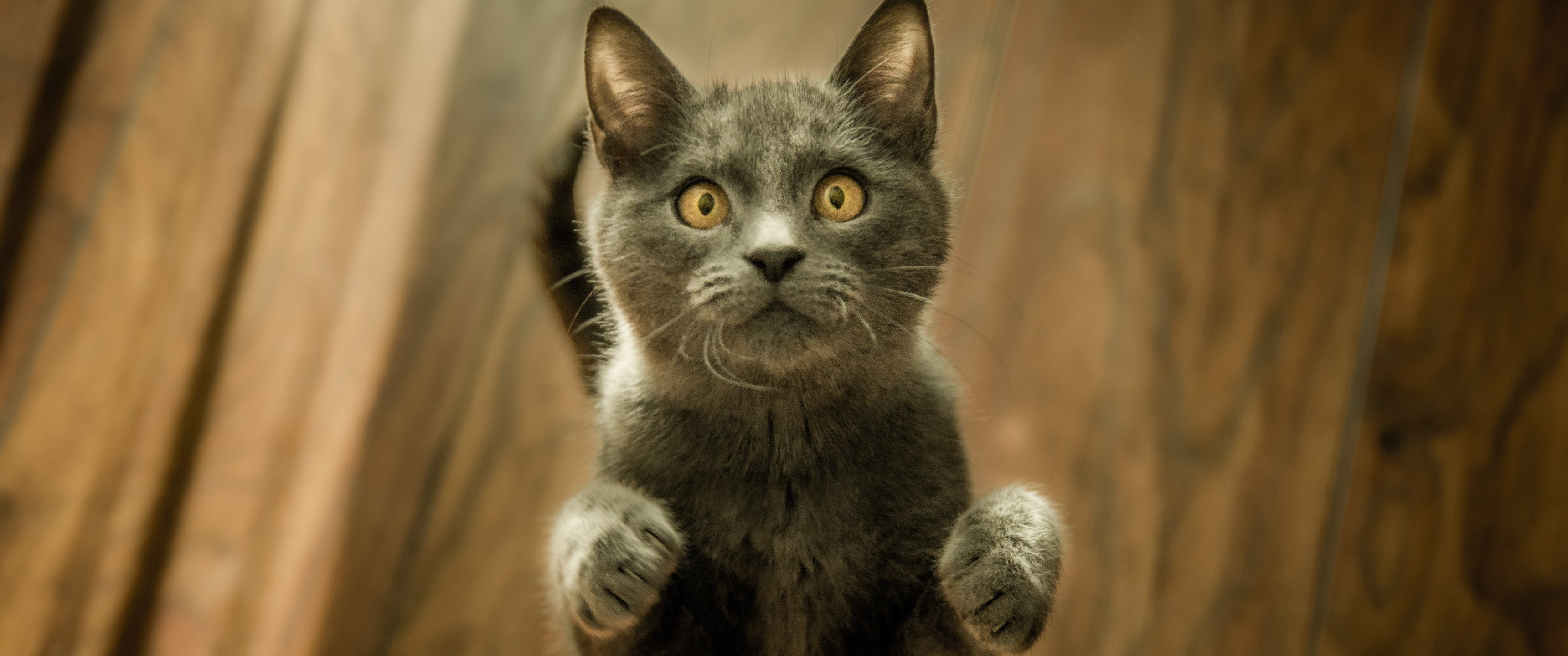 Обои: котенок, взгляд - 3440x1440