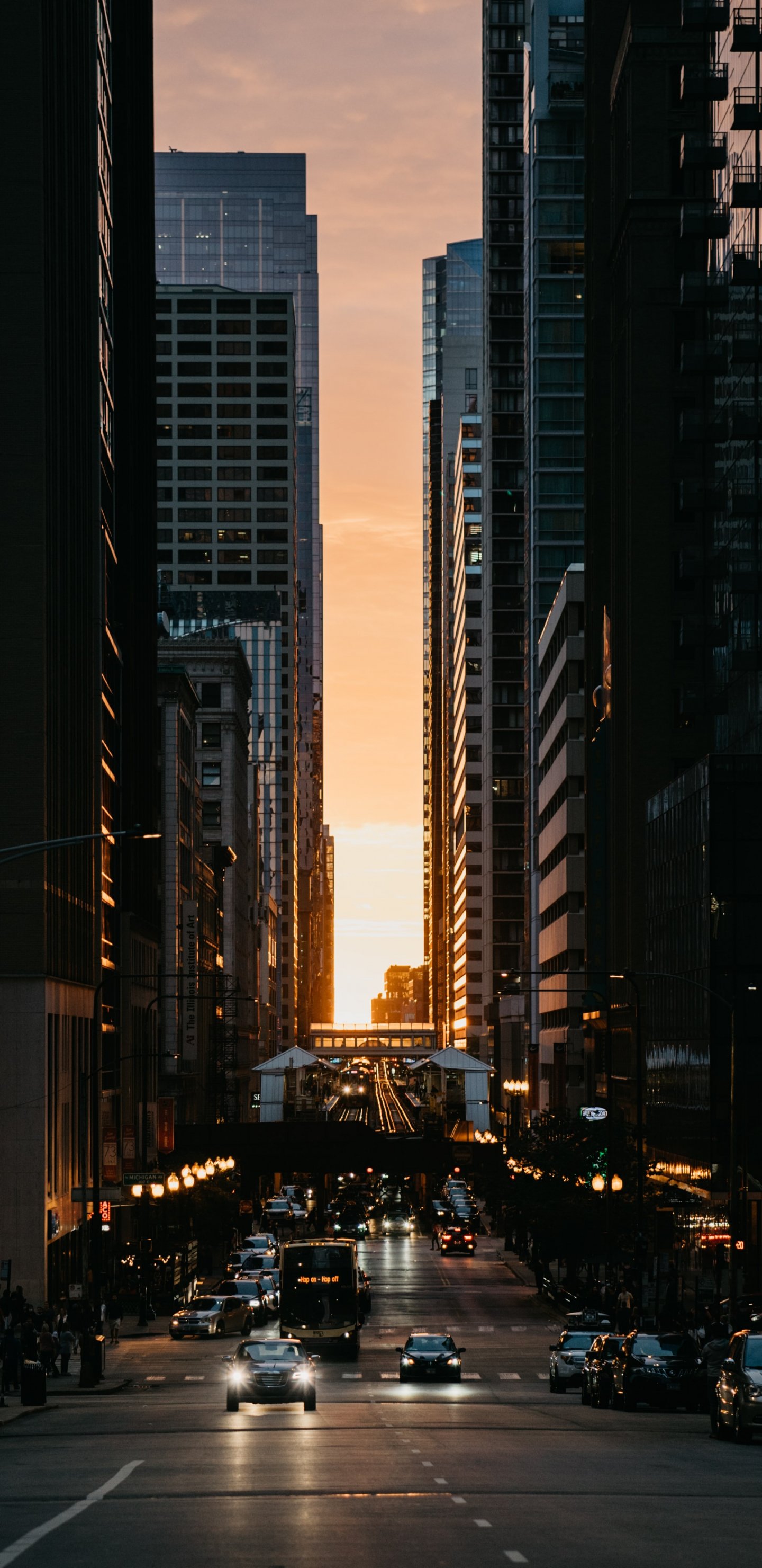Обои: город, автомобиль, закат - 1440x2960