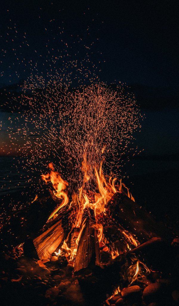 Обои: костёр, огонь, искры - 600x1024