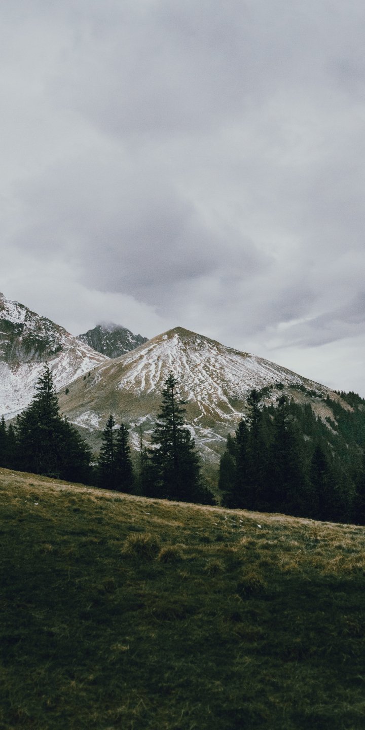Обои: гора, пик, лес, снег, деревья, спокойствие, умиротворение - 720x1440