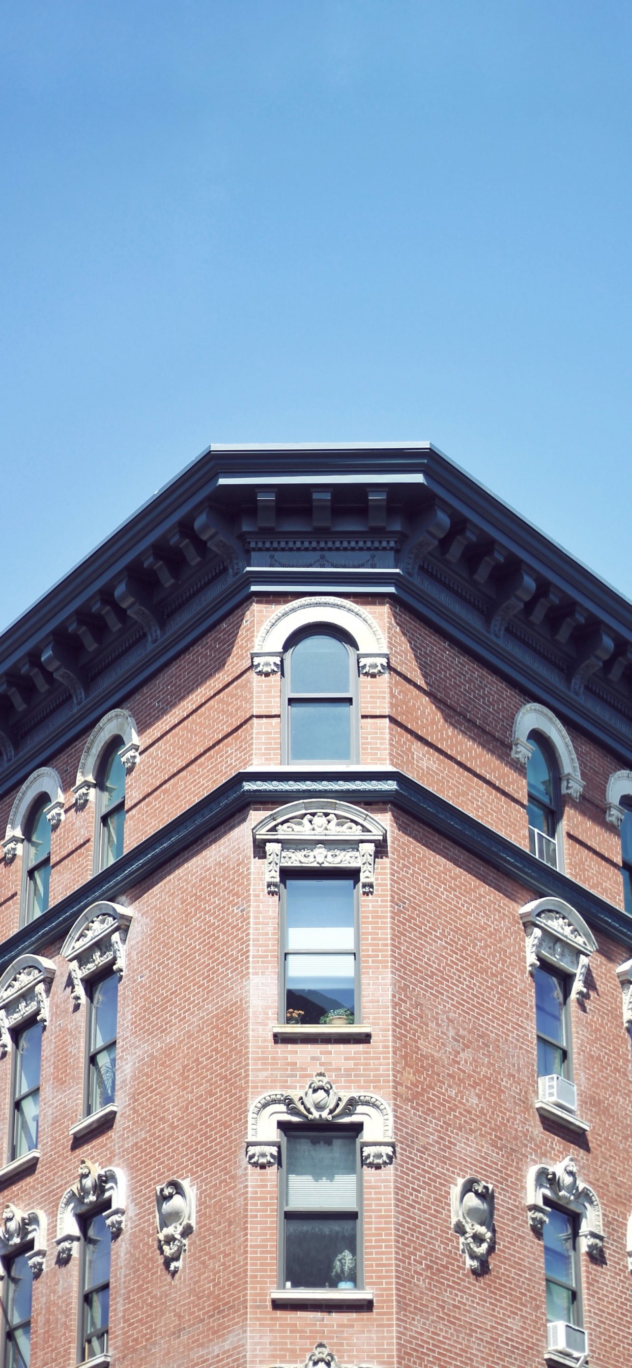 Обои: город, окна, небо, кирпичное здание, минимализм - 1242x2688