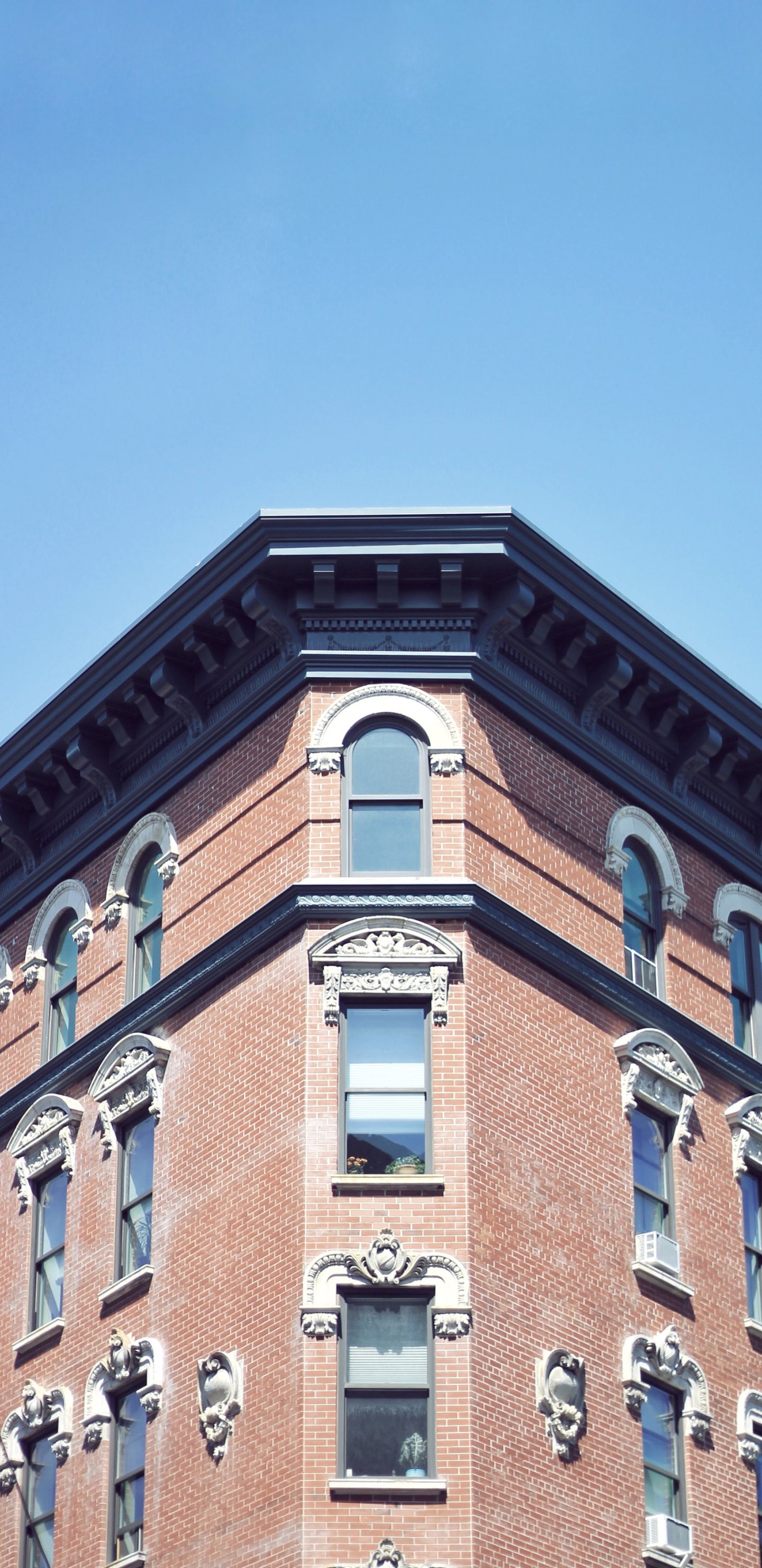 Обои: город, окна, небо, кирпичное здание, минимализм - 1440x2960
