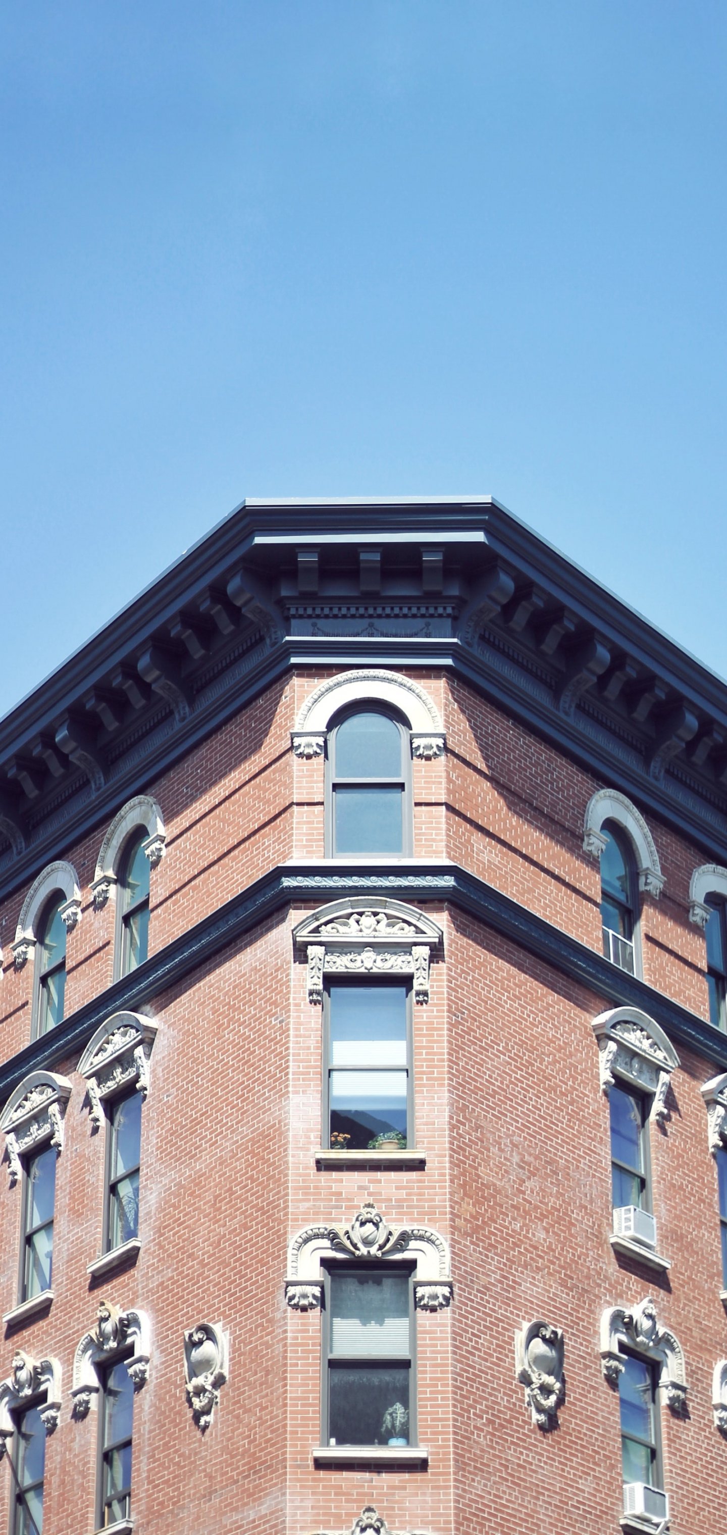Обои: город, окна, небо, кирпичное здание, минимализм - 1440x3040