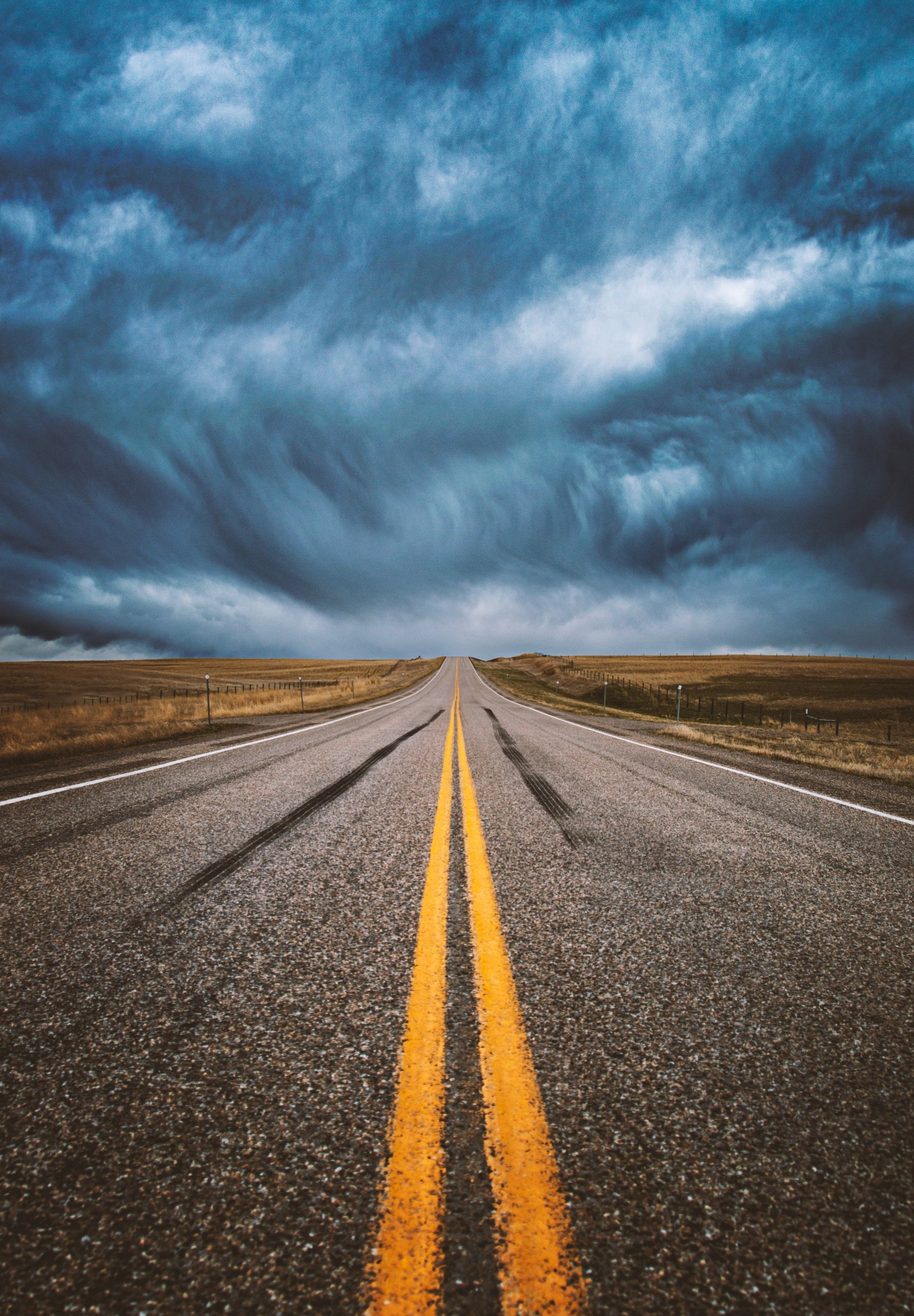 Обои: асфальт, дорога, тучи, небо, в даль, путь - 1640x2360