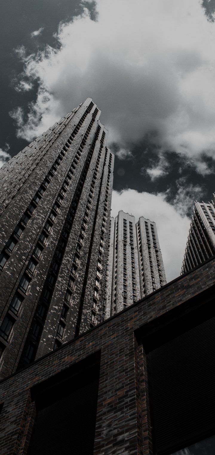Обои: небоскреб, здание, высотка, кирпич, облака, грусть - 720x1520