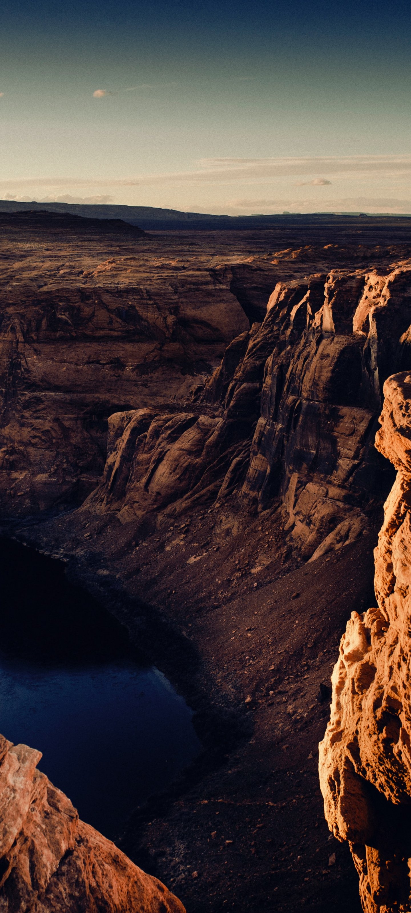 Обои: каньон, озеро, скалы, солнце, фотограф - 1440x3200
