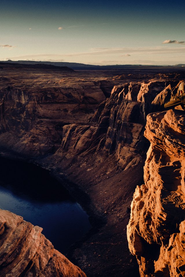 Обои: каньон, озеро, скалы, солнце, фотограф - 640x960