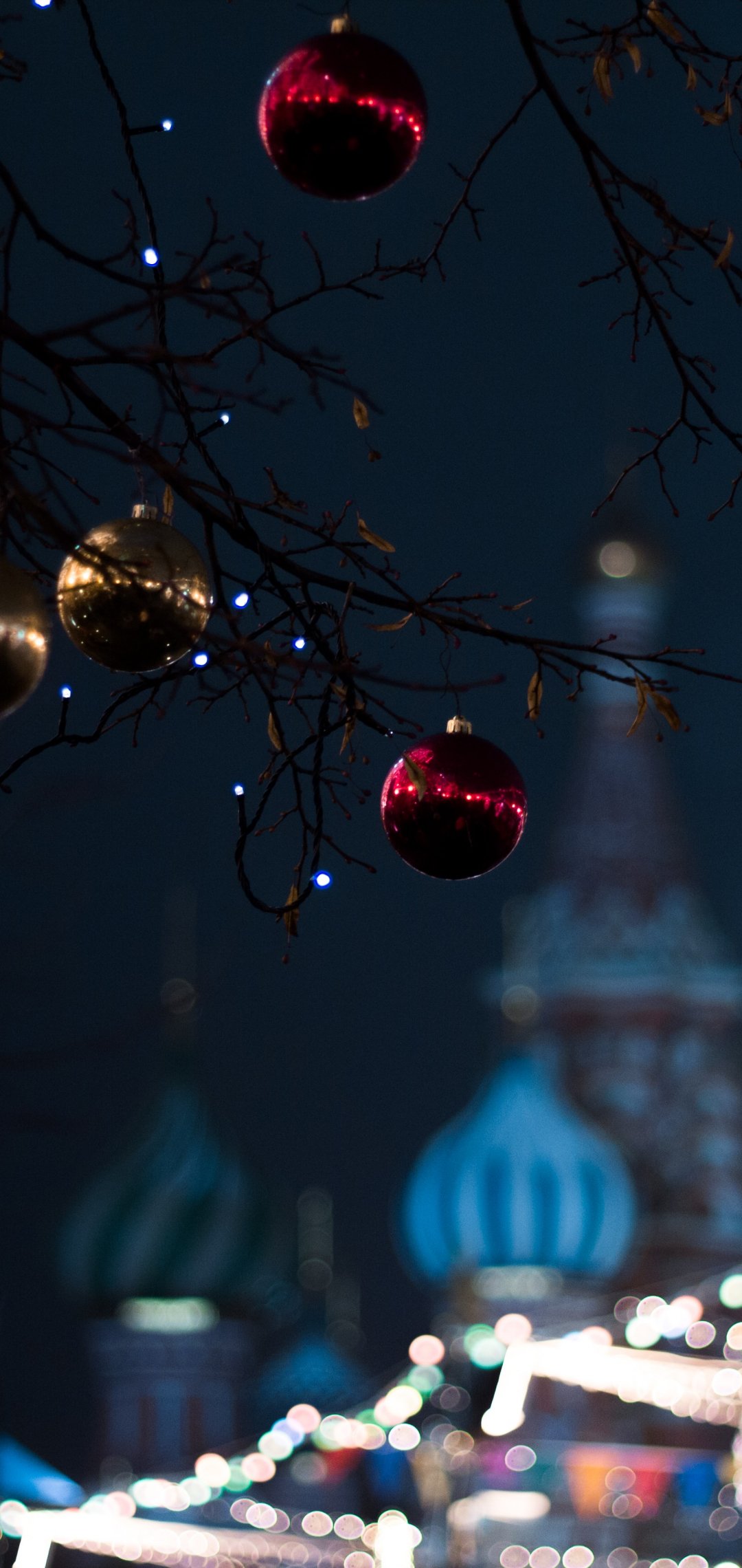 Обои: Москва, украшения, лампочки, ночь, расфокусировка - 1080x2280