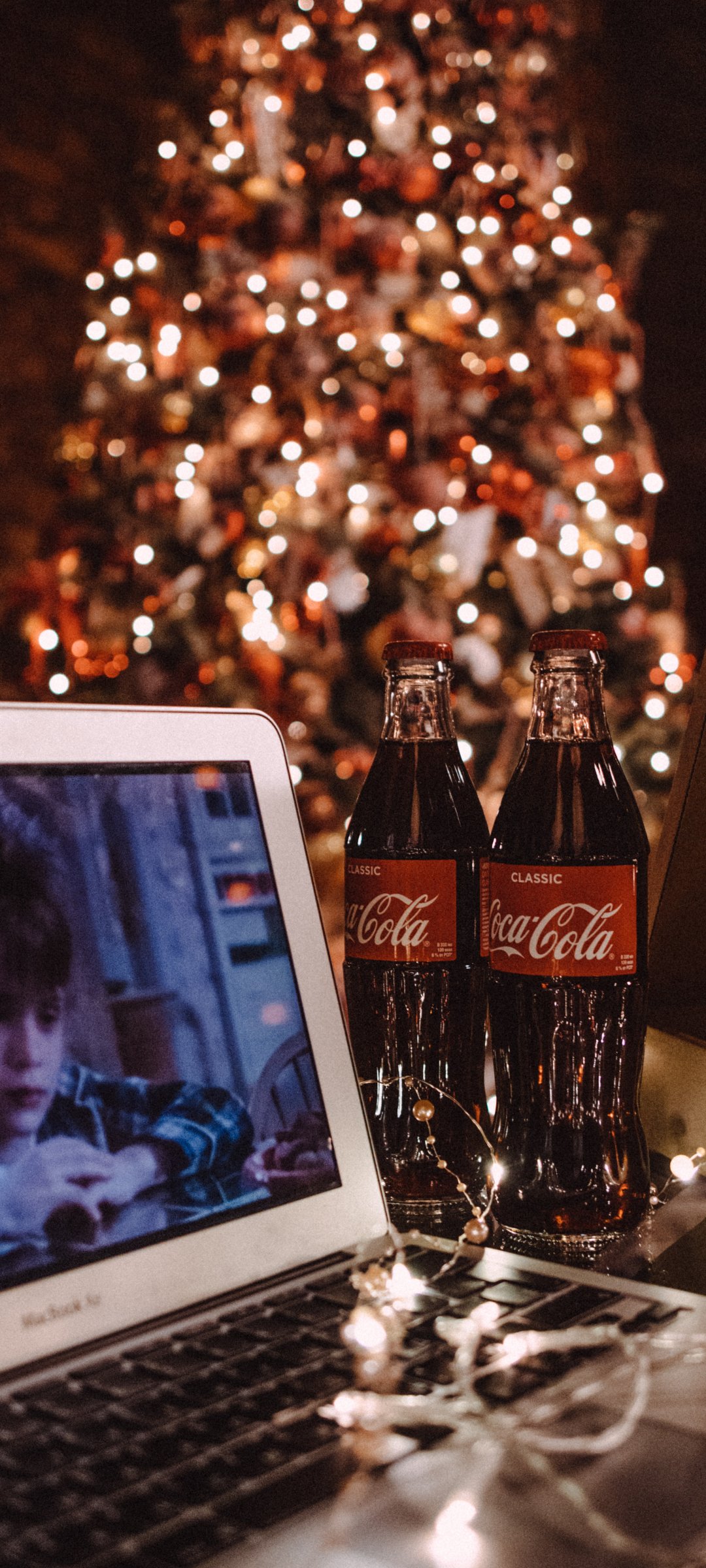 Обои: Новый год, один дома, coca-cola, пицца, отдых, фильм, огни, гирлянда - 1080x2400
