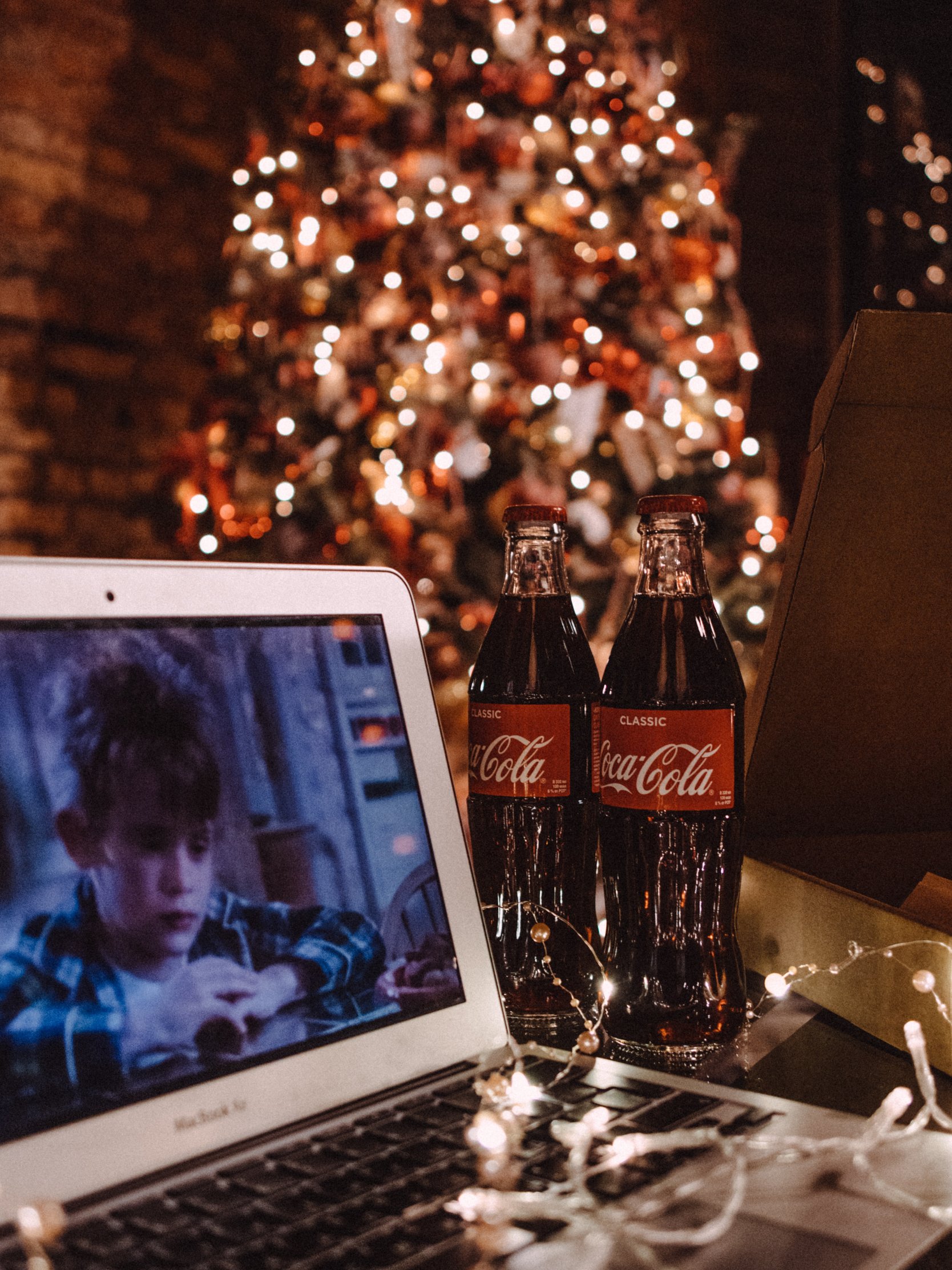 Обои: Новый год, один дома, coca-cola, пицца, отдых, фильм, огни, гирлянда - 1668x2224