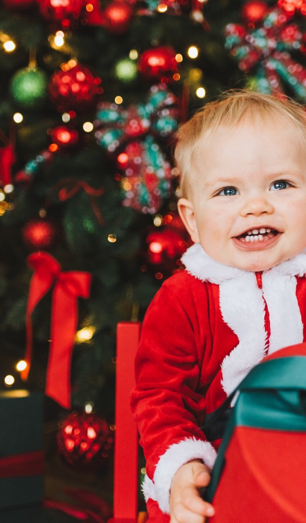 Обои: ребенок, улыбка, маленький Санта, новогодняя фотосессия - 600x1024