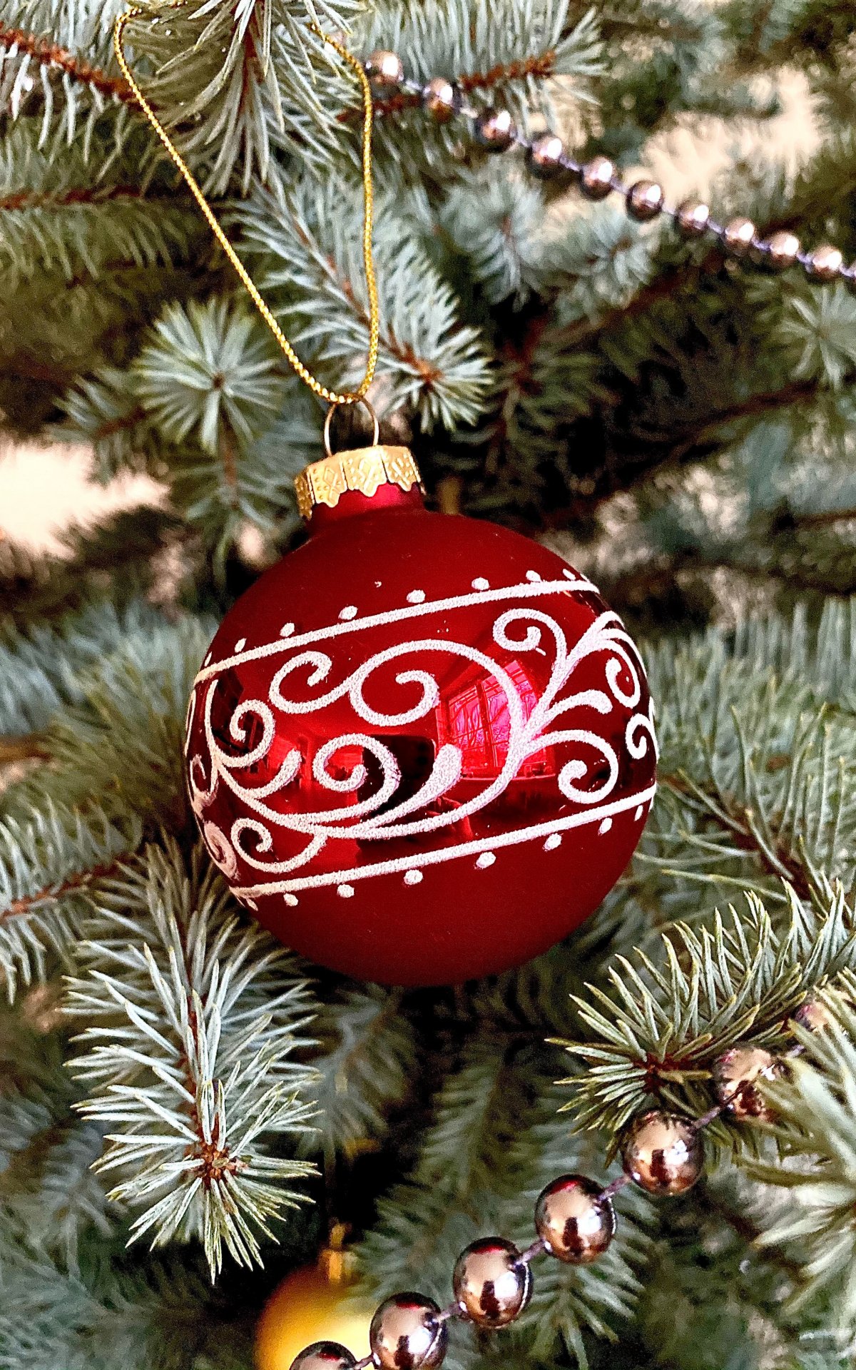 Обои: ель, елочная игрушка, иголки, узор, красный - 1200x1920
