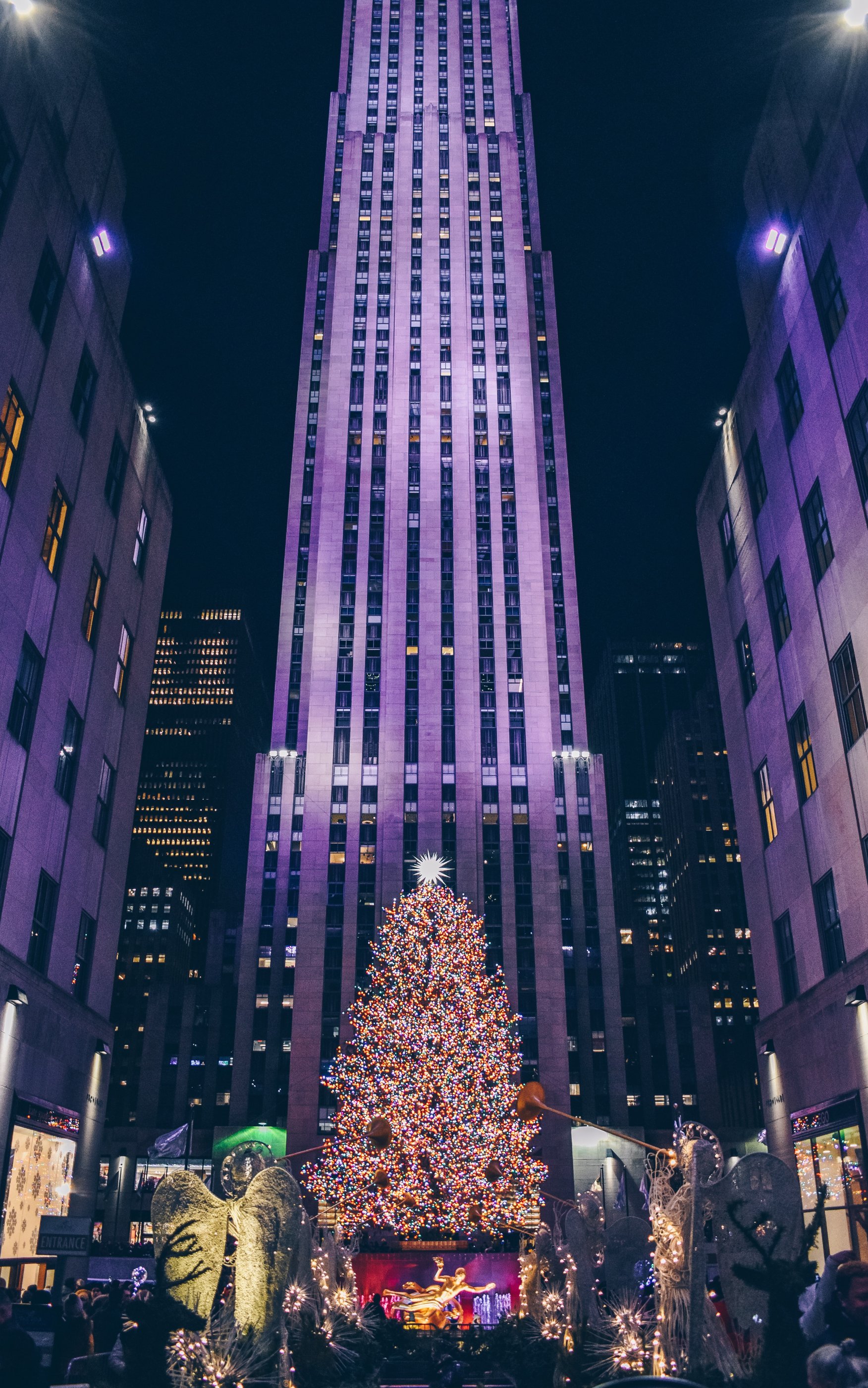 Обои: Новый год, 2021, небоскреб, городская елка, площадь ночной город - 1752x2800