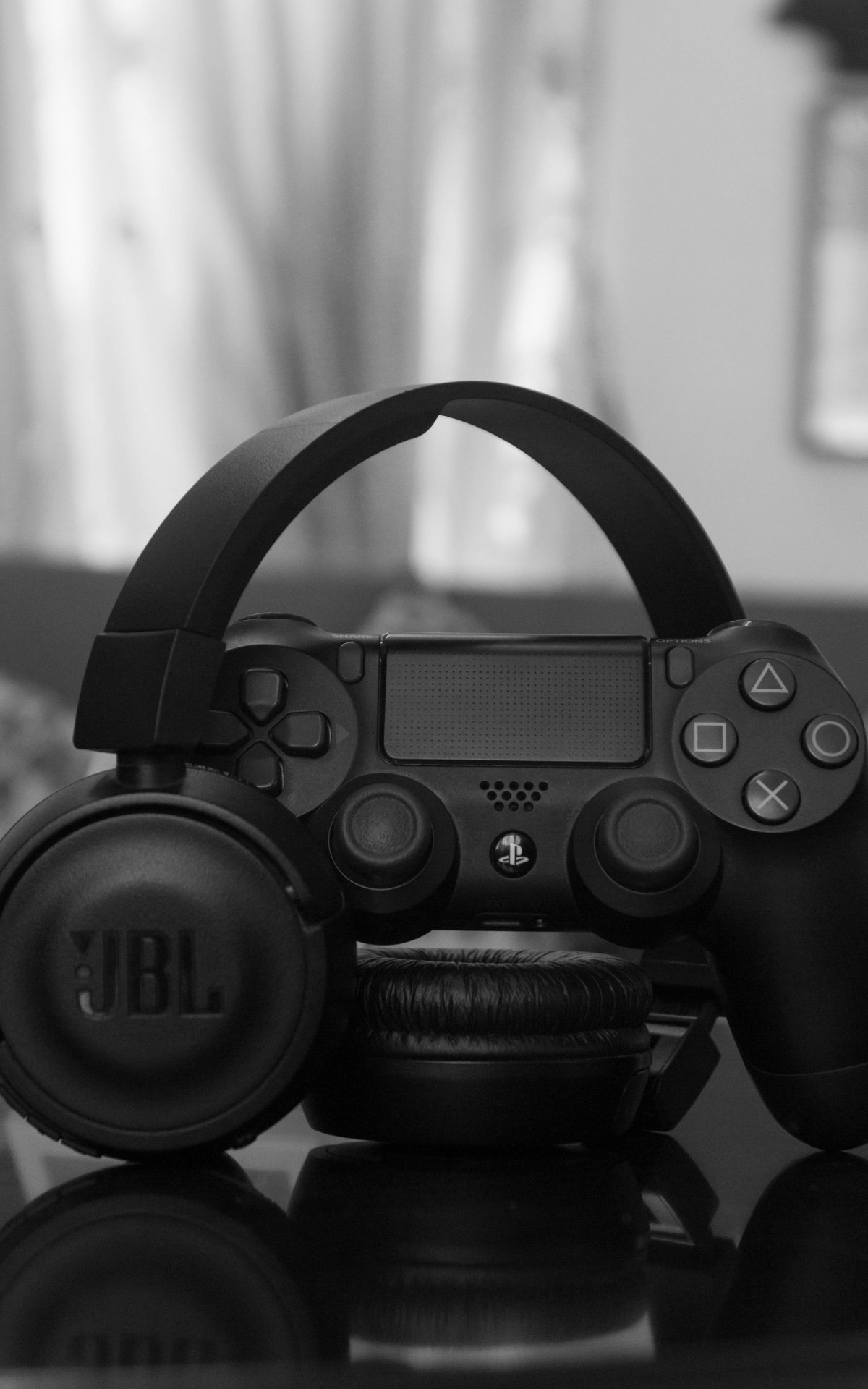 Обои: наушники, джойстик, игра, черно-белое фото, музыка - 1200x1920