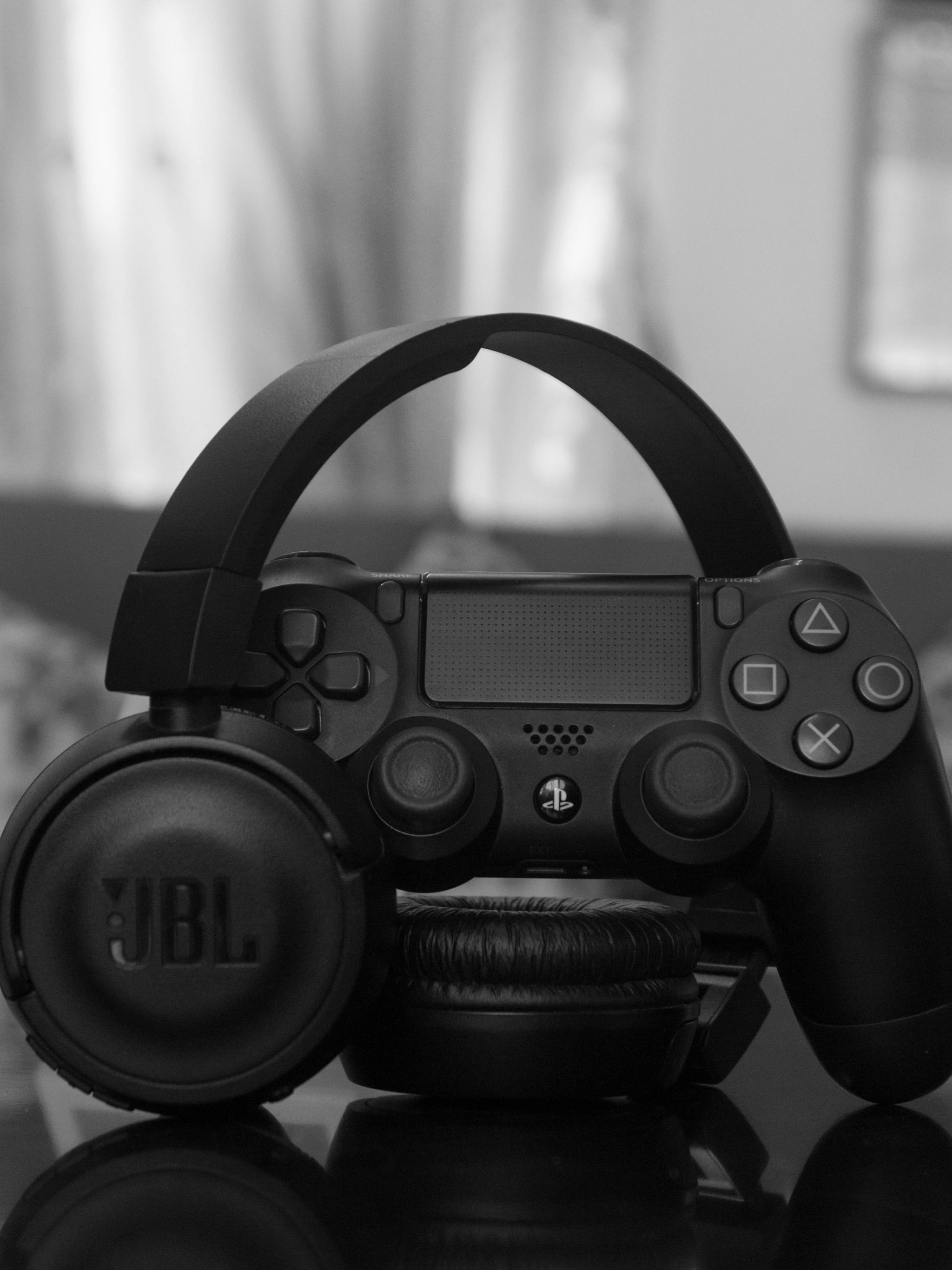 Обои: наушники, джойстик, игра, черно-белое фото, музыка - 2048x2732