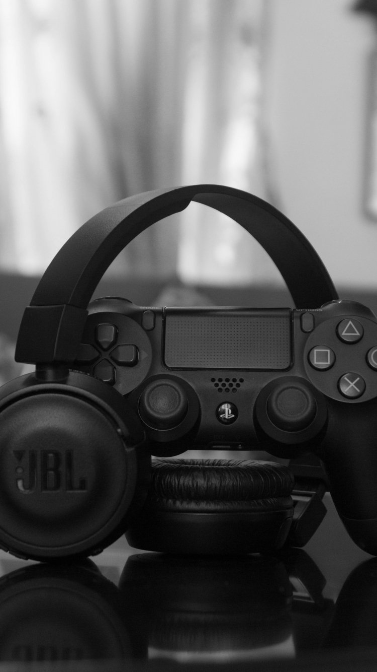 Обои: наушники, джойстик, игра, черно-белое фото, музыка - 750x1334