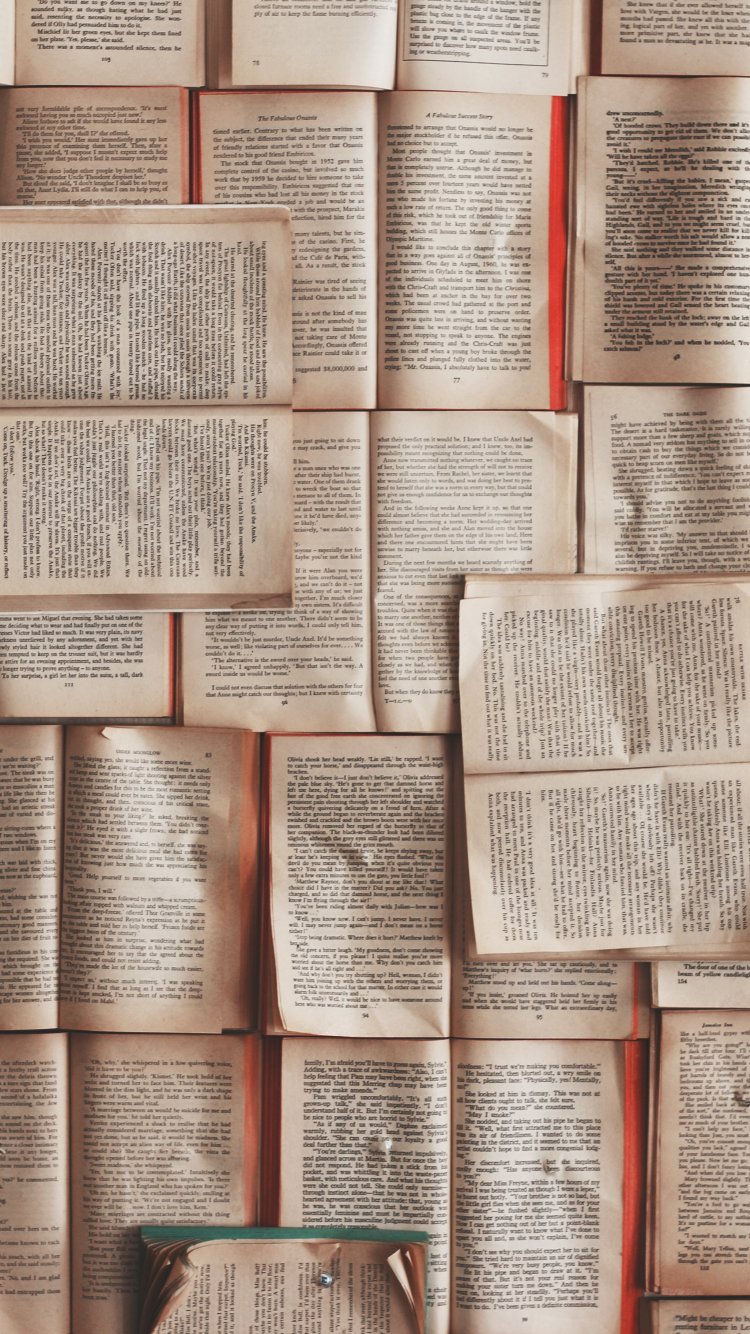 Обои: книги, стена, страница, текст, стена книг - 750x1334