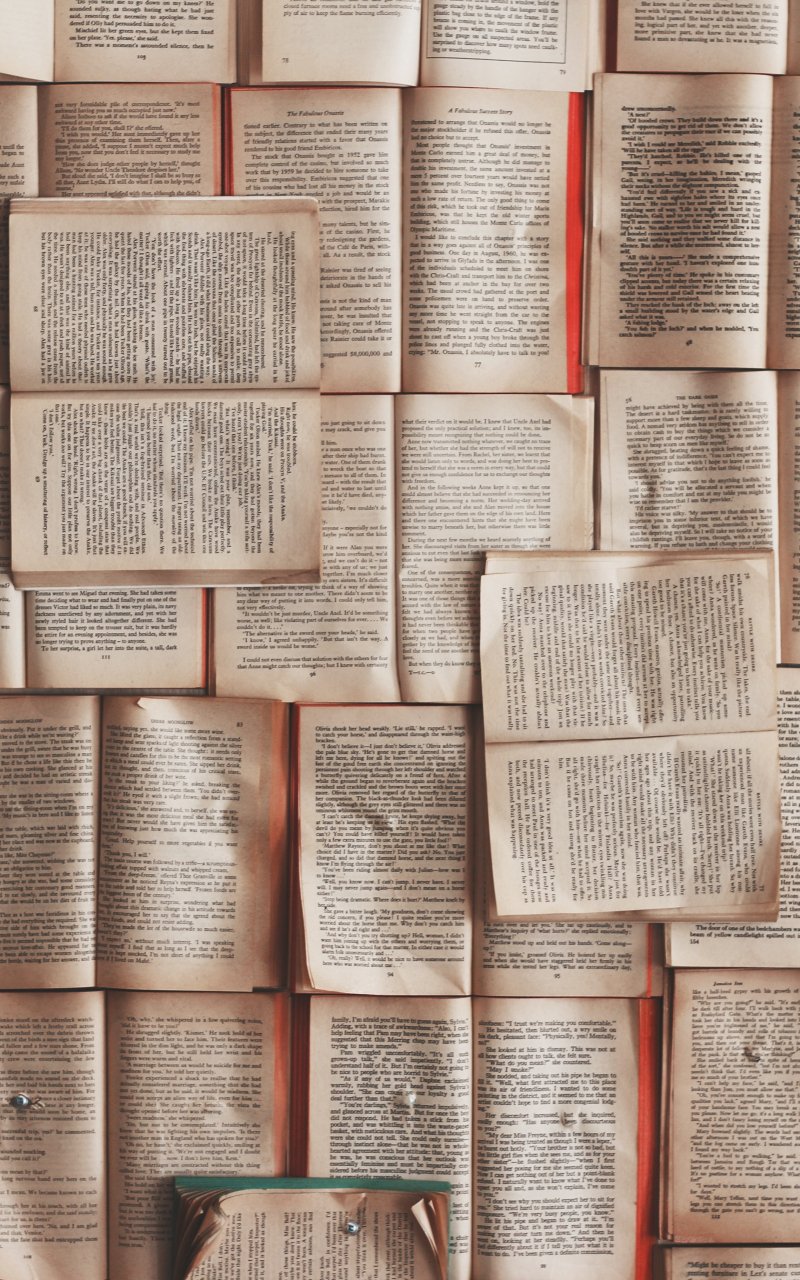 Обои: книги, стена, страница, текст, стена книг - 800x1280