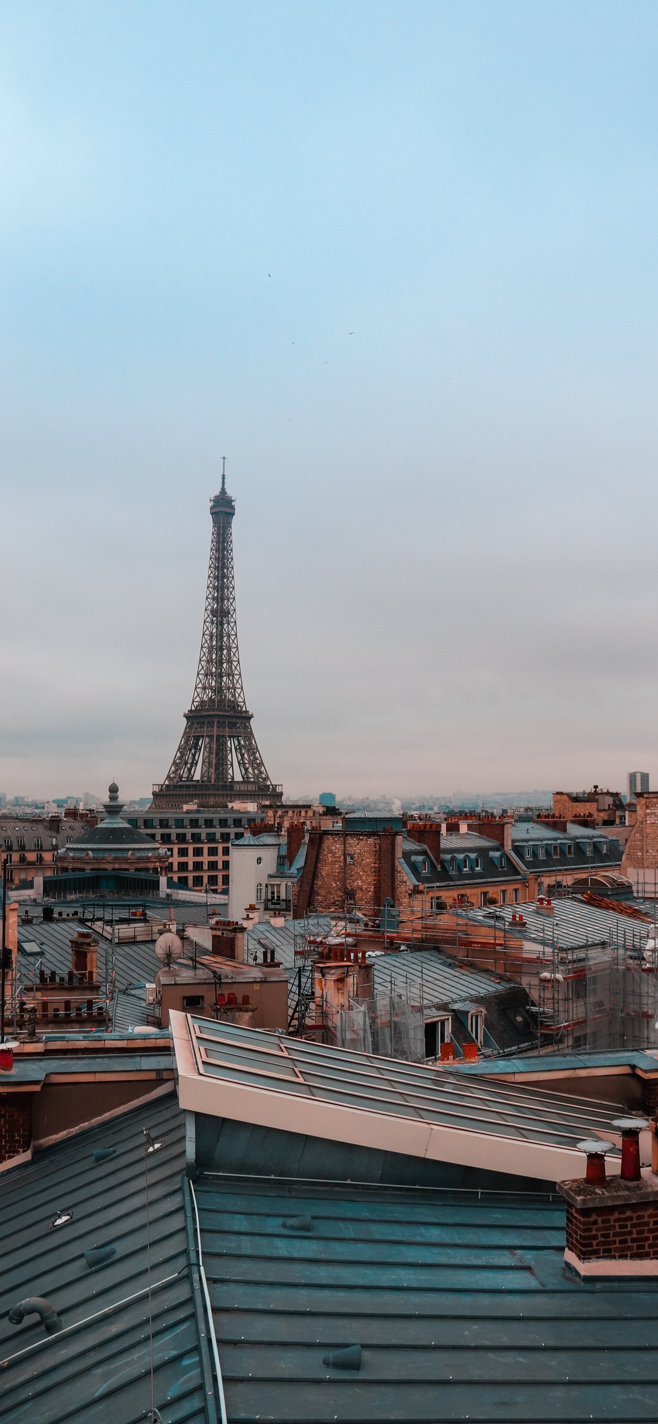 Обои: Франция, Париж, крыши домов, на крыше, дым, Эйфелева башня - 1284x2778