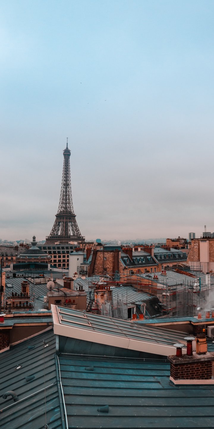 Обои: Франция, Париж, крыши домов, на крыше, дым, Эйфелева башня - 720x1440