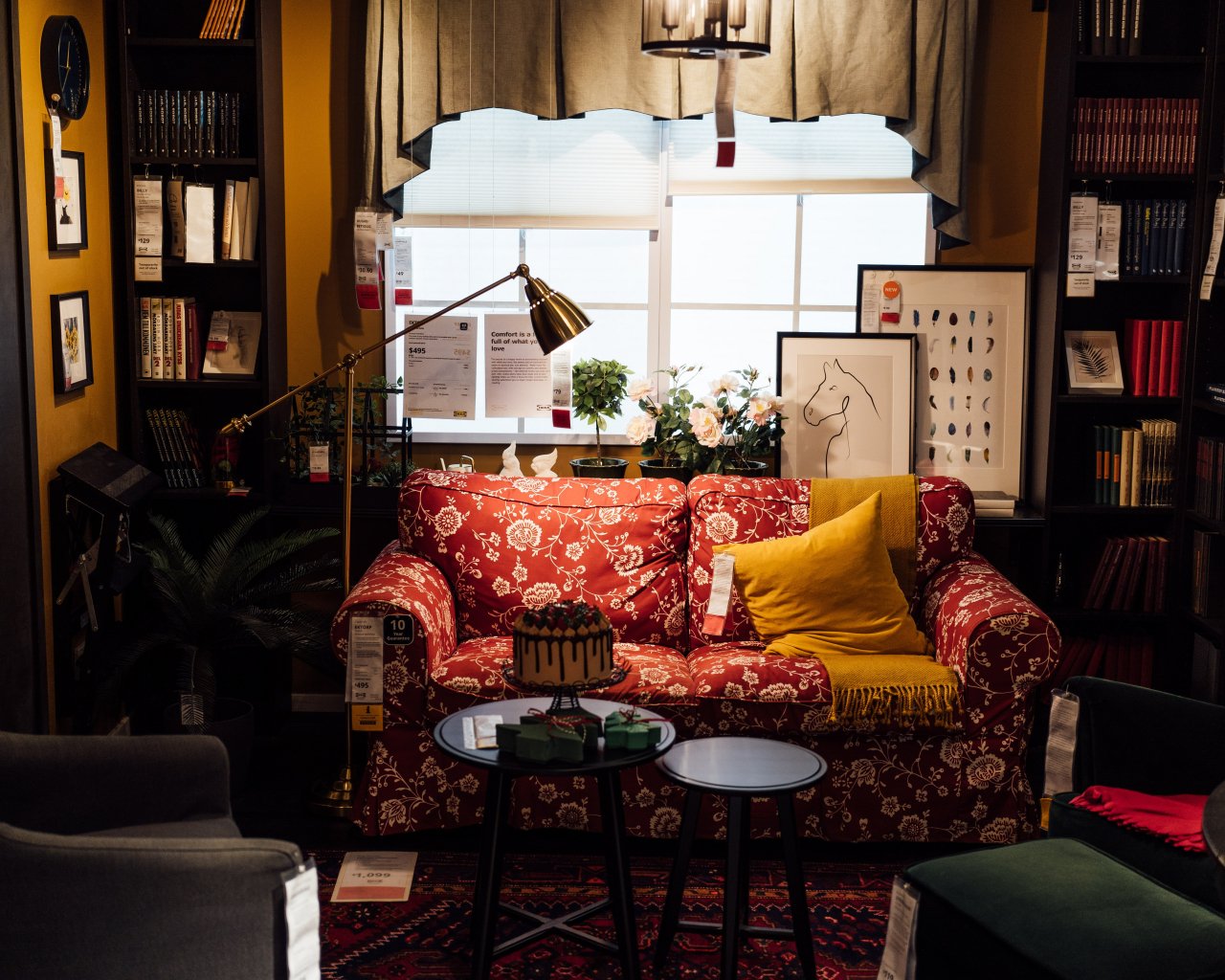 Обои: уют, дом, тепло, диван, плед, торт, лампа - 1280x1024