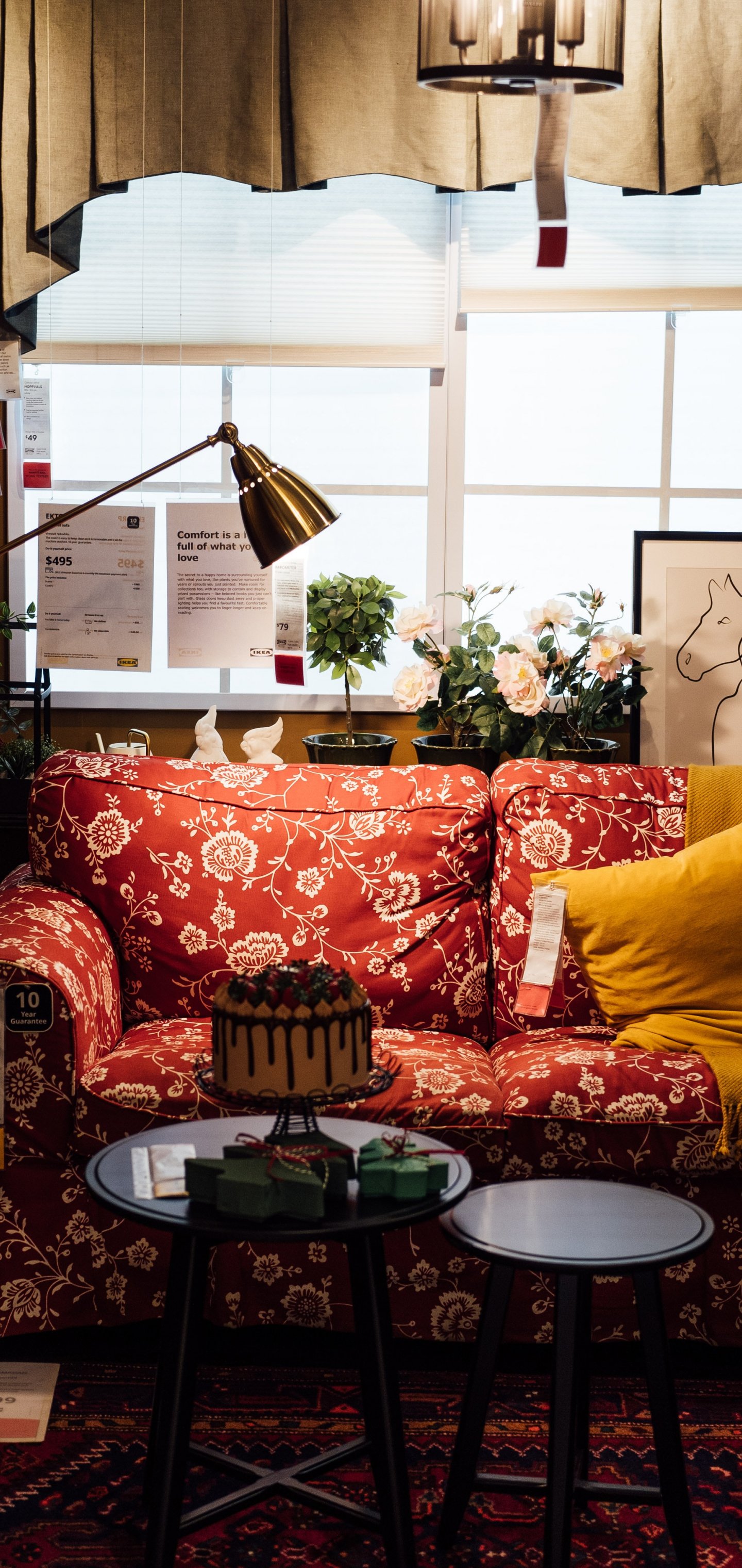 Обои: уют, дом, тепло, диван, плед, торт, лампа - 1440x3040