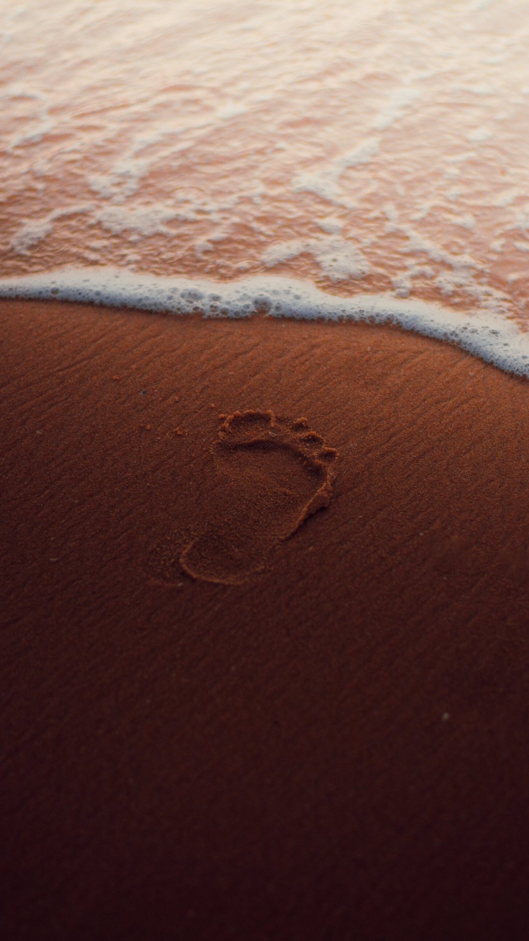 Обои: след, песок, вода, море, морская пена - 1080x1920