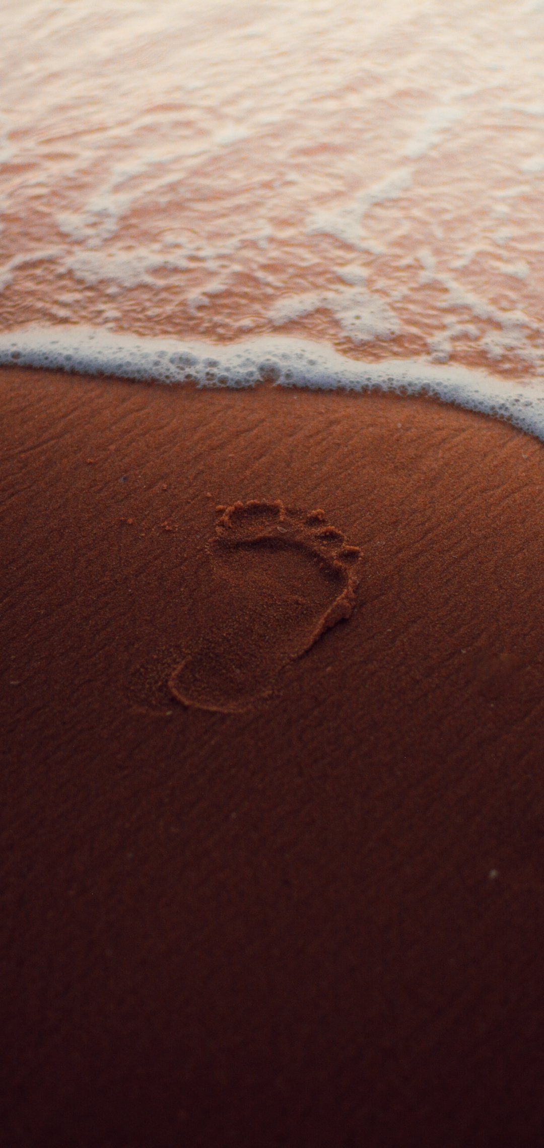 Обои: след, песок, вода, море, морская пена - 1080x2280