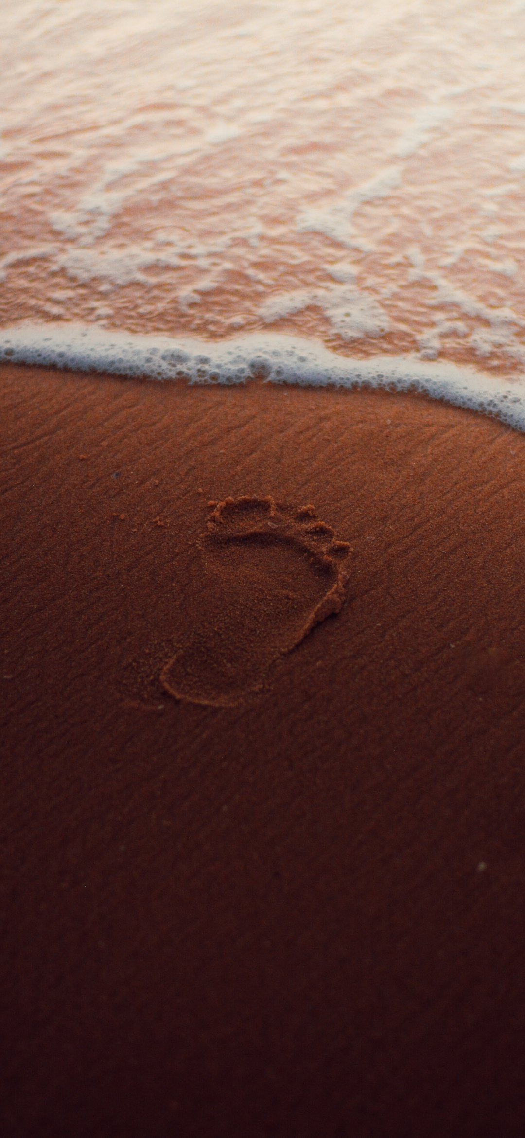 Обои: след, песок, вода, море, морская пена - 1080x2340