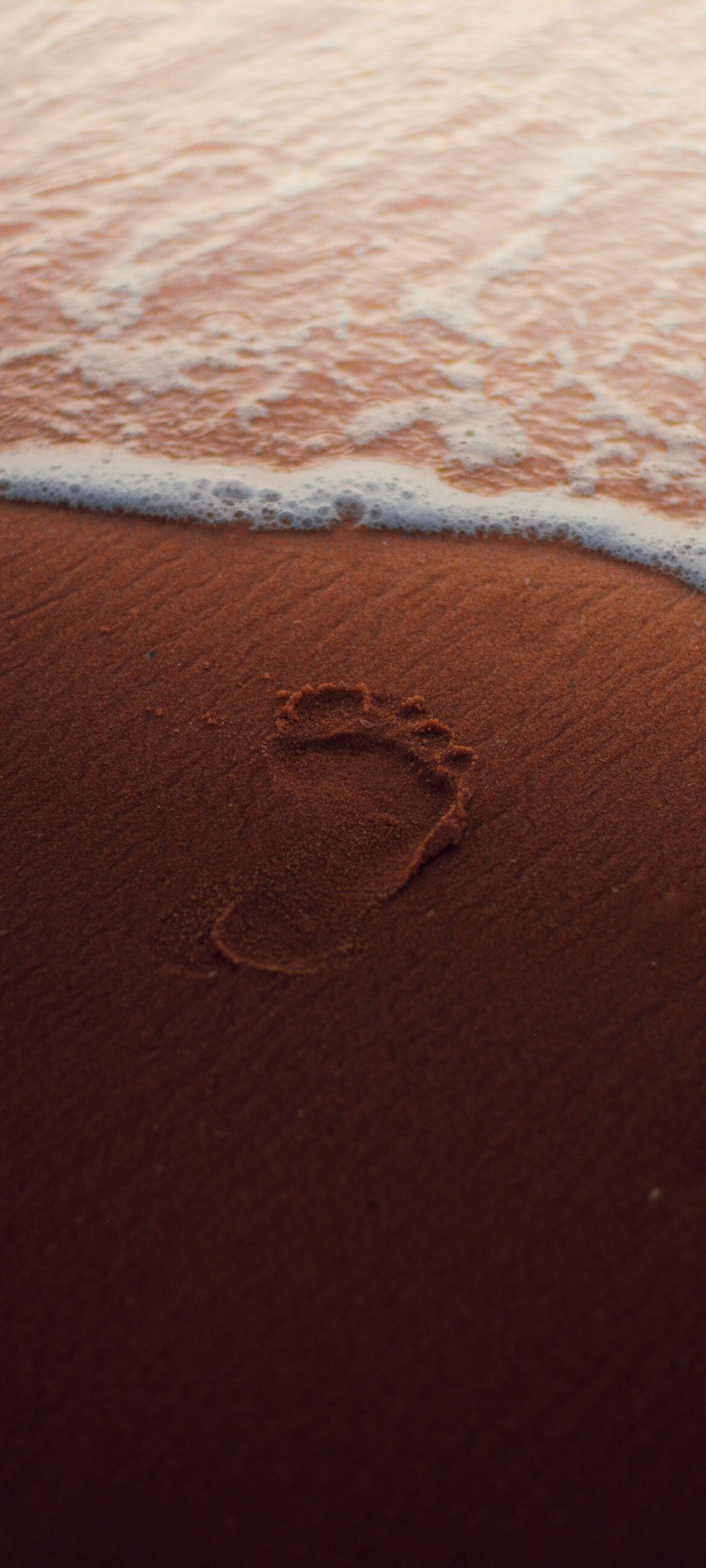 Обои: след, песок, вода, море, морская пена - 1080x2400