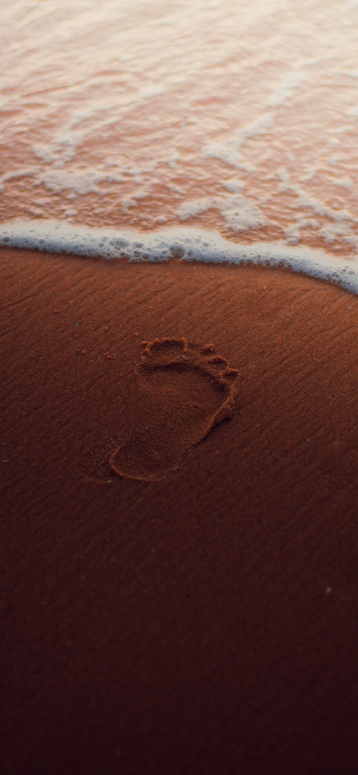 Обои: след, песок, вода, море, морская пена - 1242x2688