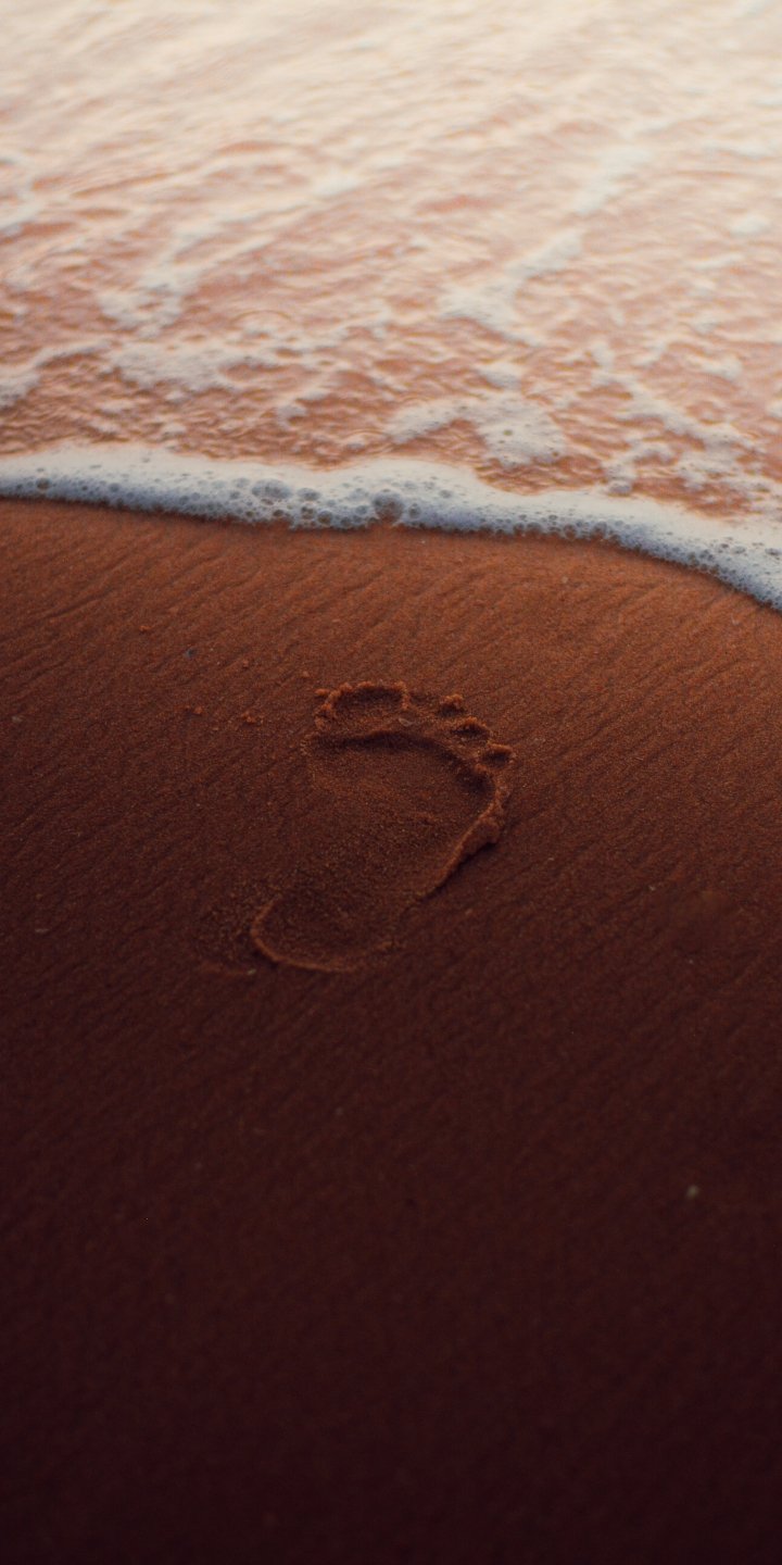 Обои: след, песок, вода, море, морская пена - 720x1440