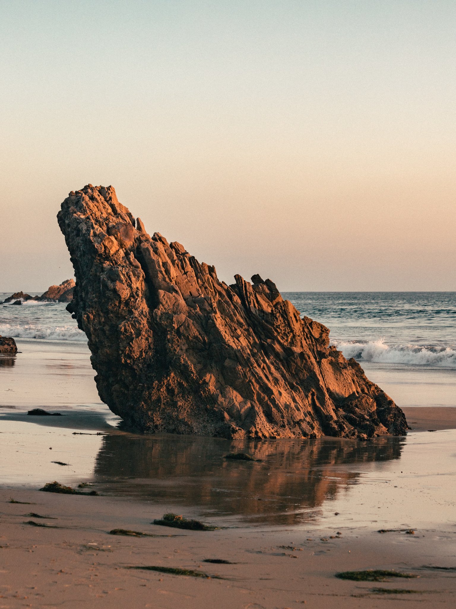 Обои: камень, скала, песок, волна, пляж, глыба - 1536x2048