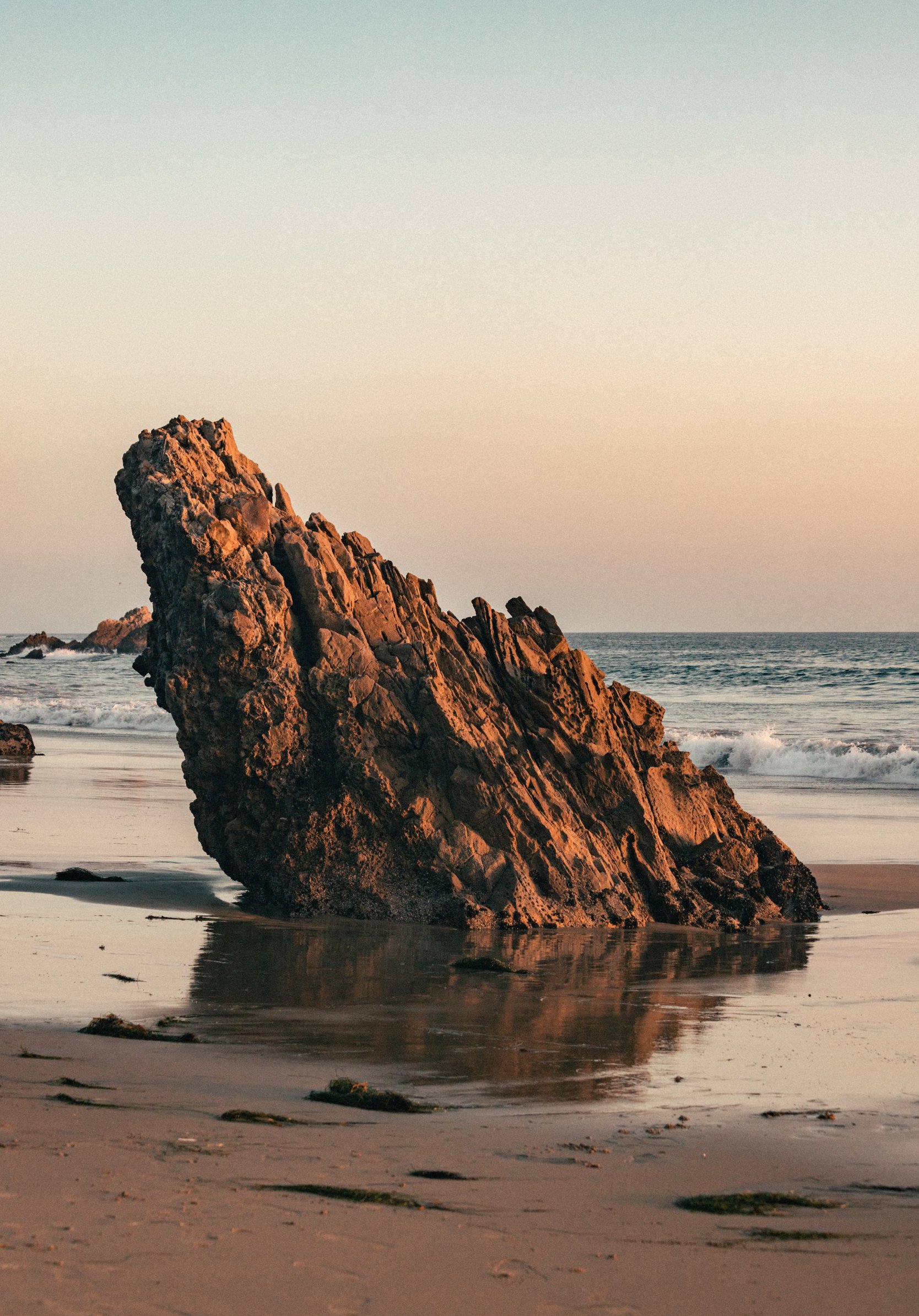 Обои: камень, скала, песок, волна, пляж, глыба - 1668x2388