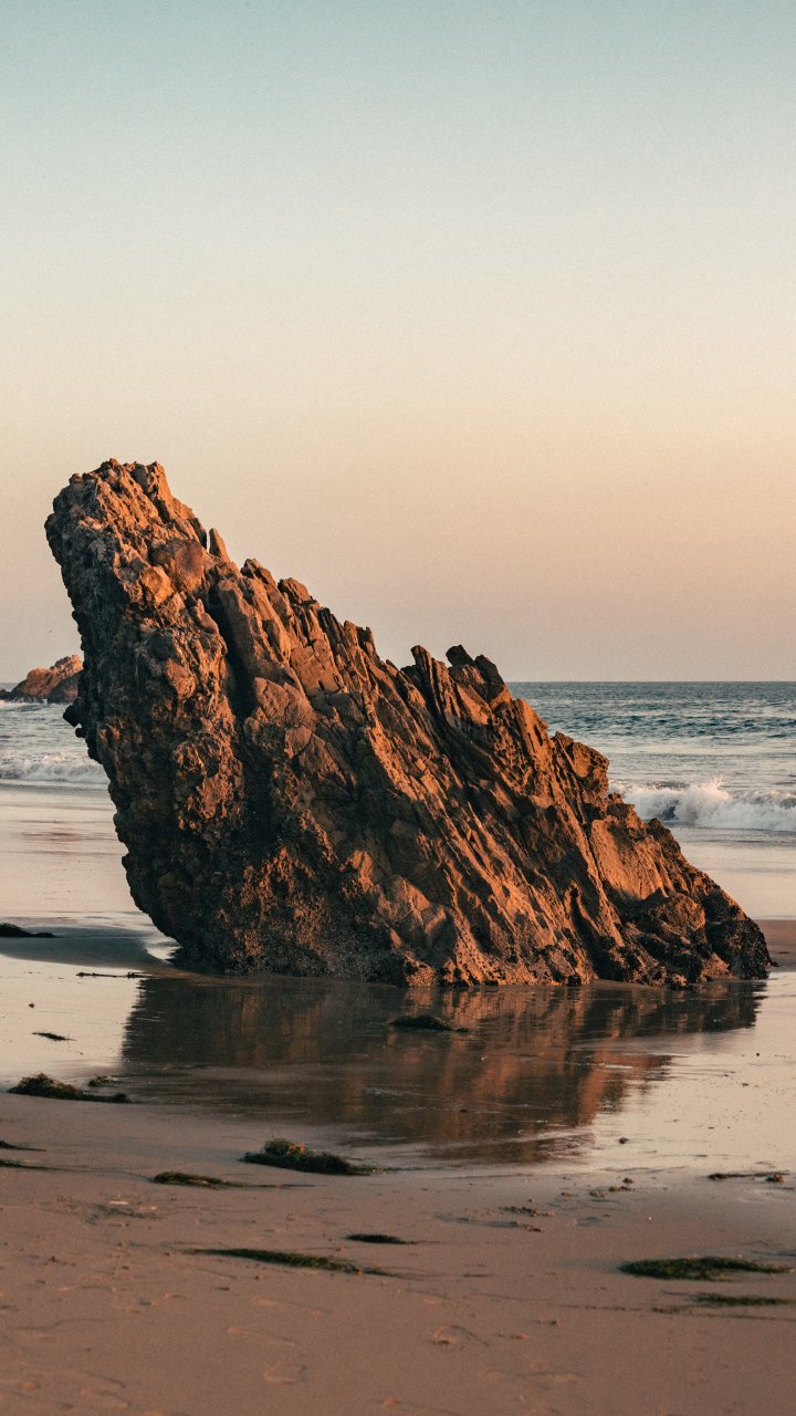 Обои: камень, скала, песок, волна, пляж, глыба - 720x1280