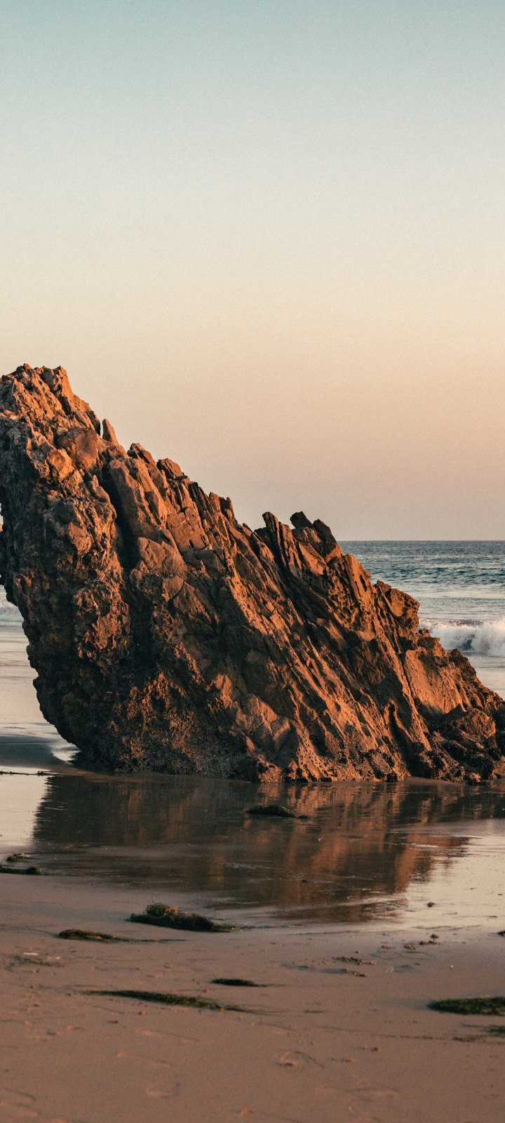 Обои: камень, скала, песок, волна, пляж, глыба - 720x1600