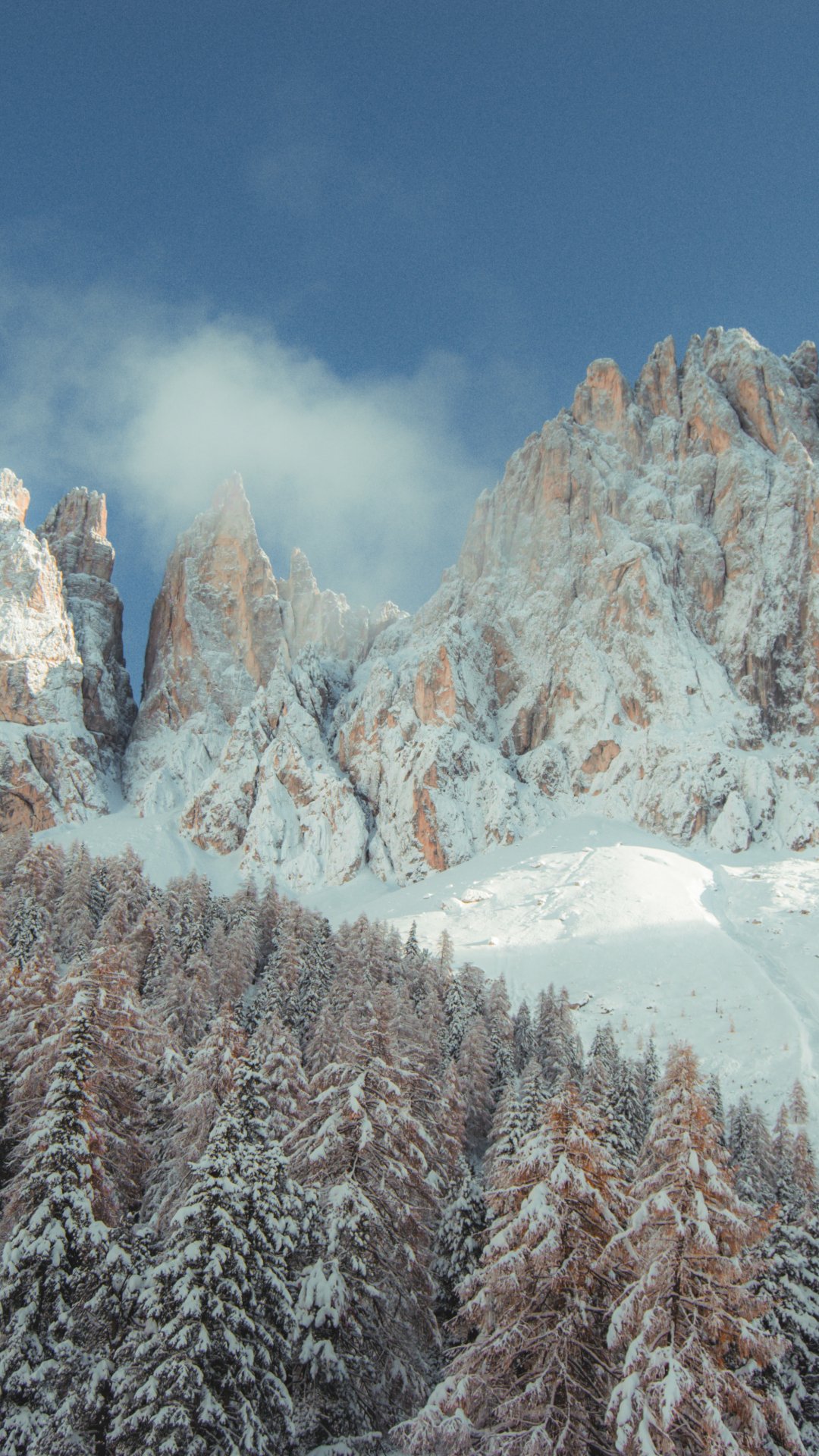 Обои: горы, заснеженные холмы, деревья, снег, тропинка, зима - 1080x1920