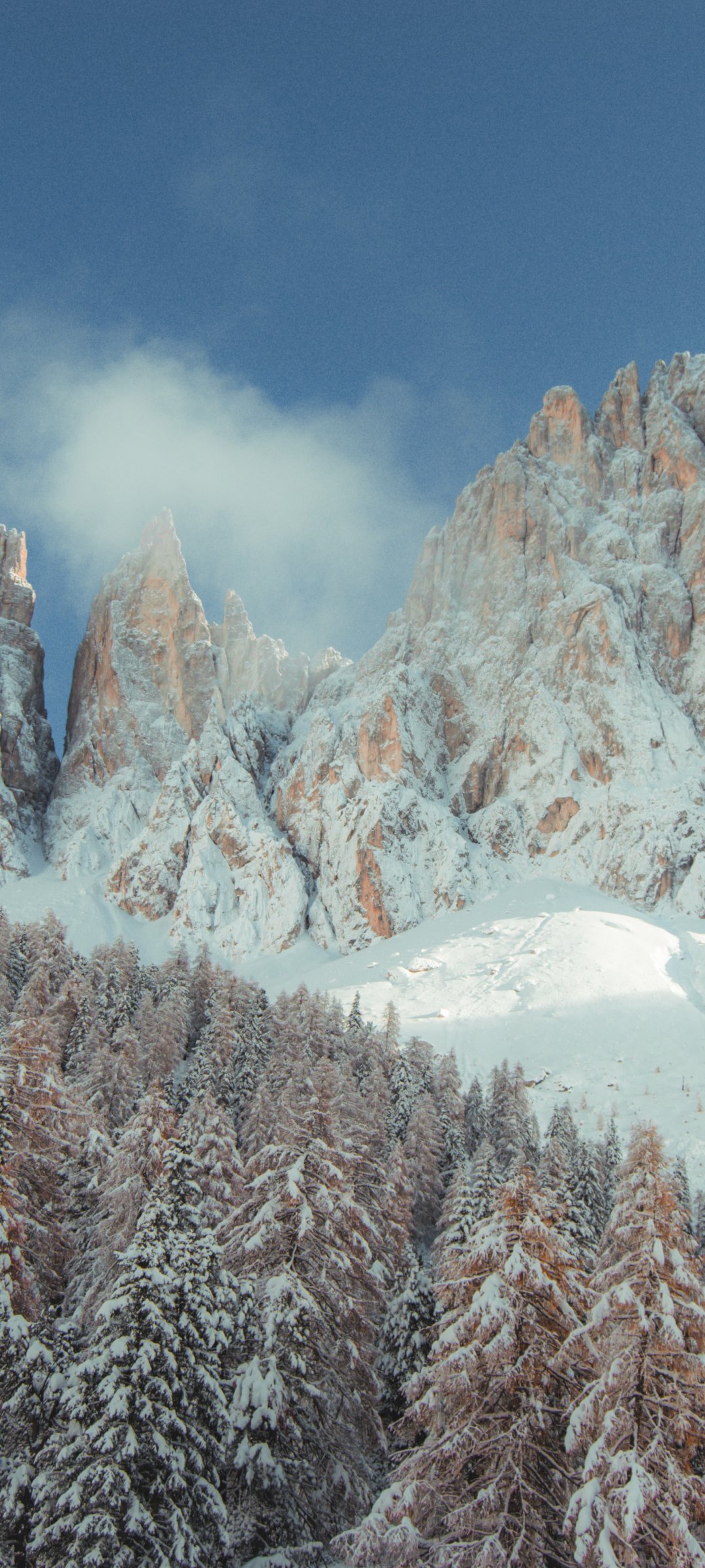 Обои: горы, заснеженные холмы, деревья, снег, тропинка, зима - 1080x2400