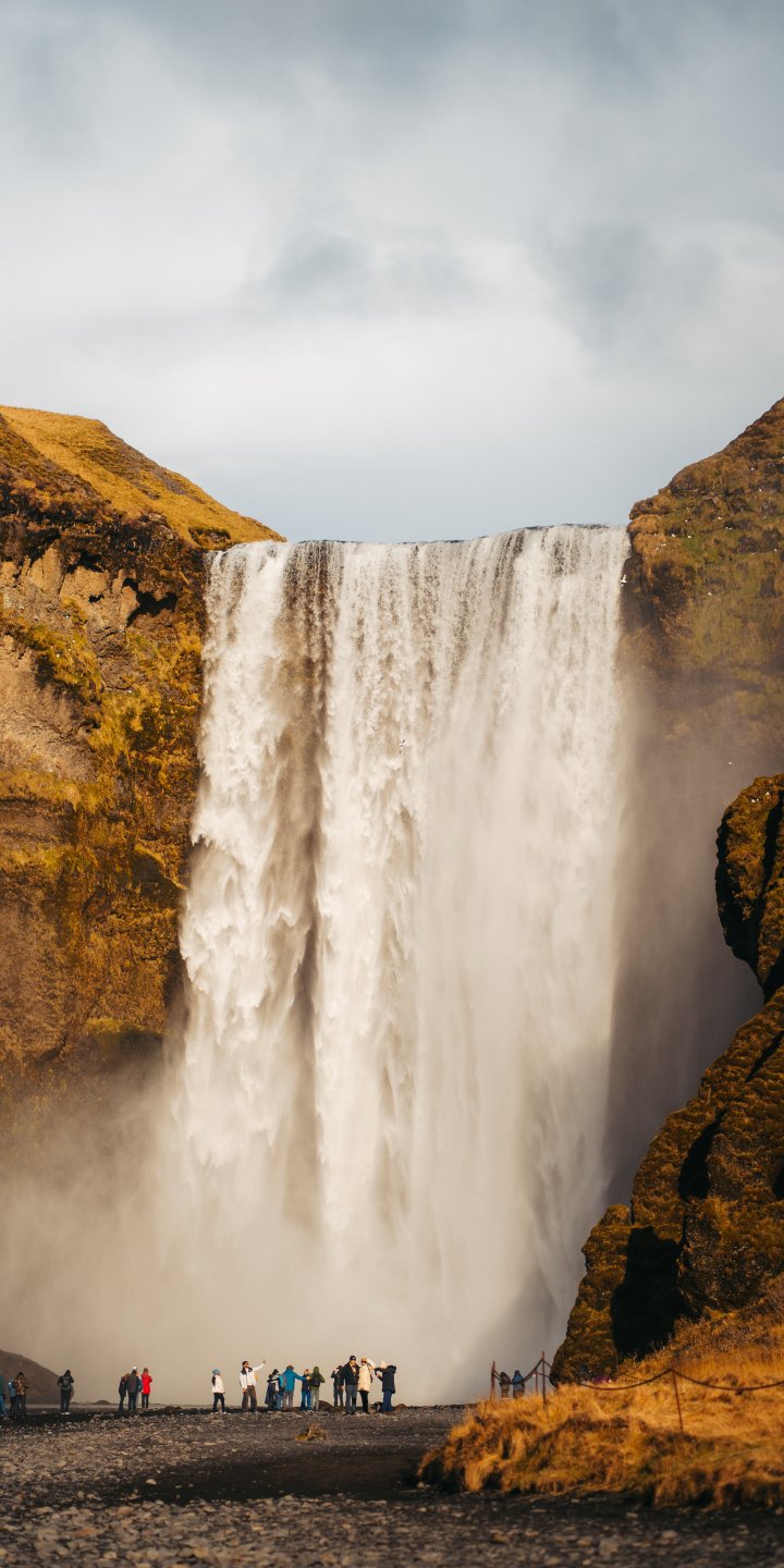 Обои: водопад, туристы, вода, скалы - 720x1440