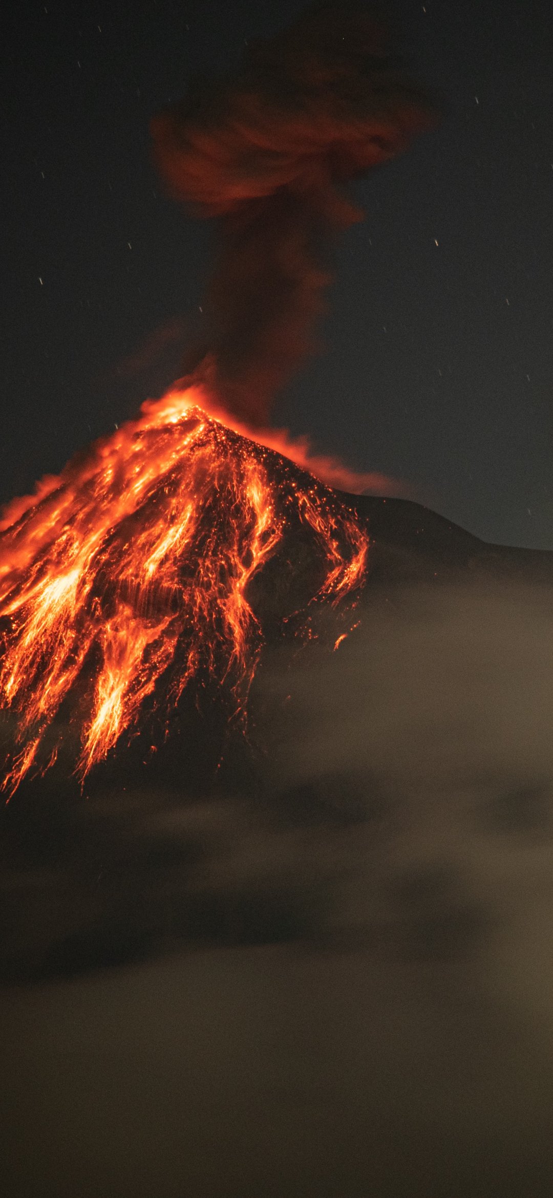 Обои: вулкан, извержение, природное явление, лава, дым, ночь - 1080x2340
