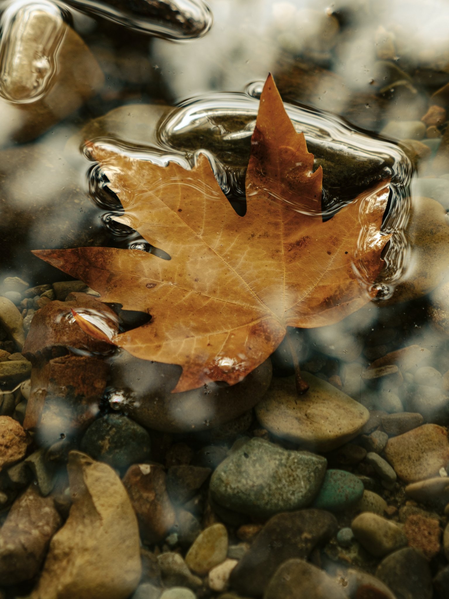 Обои: кленовый лист, лист, желтый лист, осень, лужа, вода, камни - 1536x2048