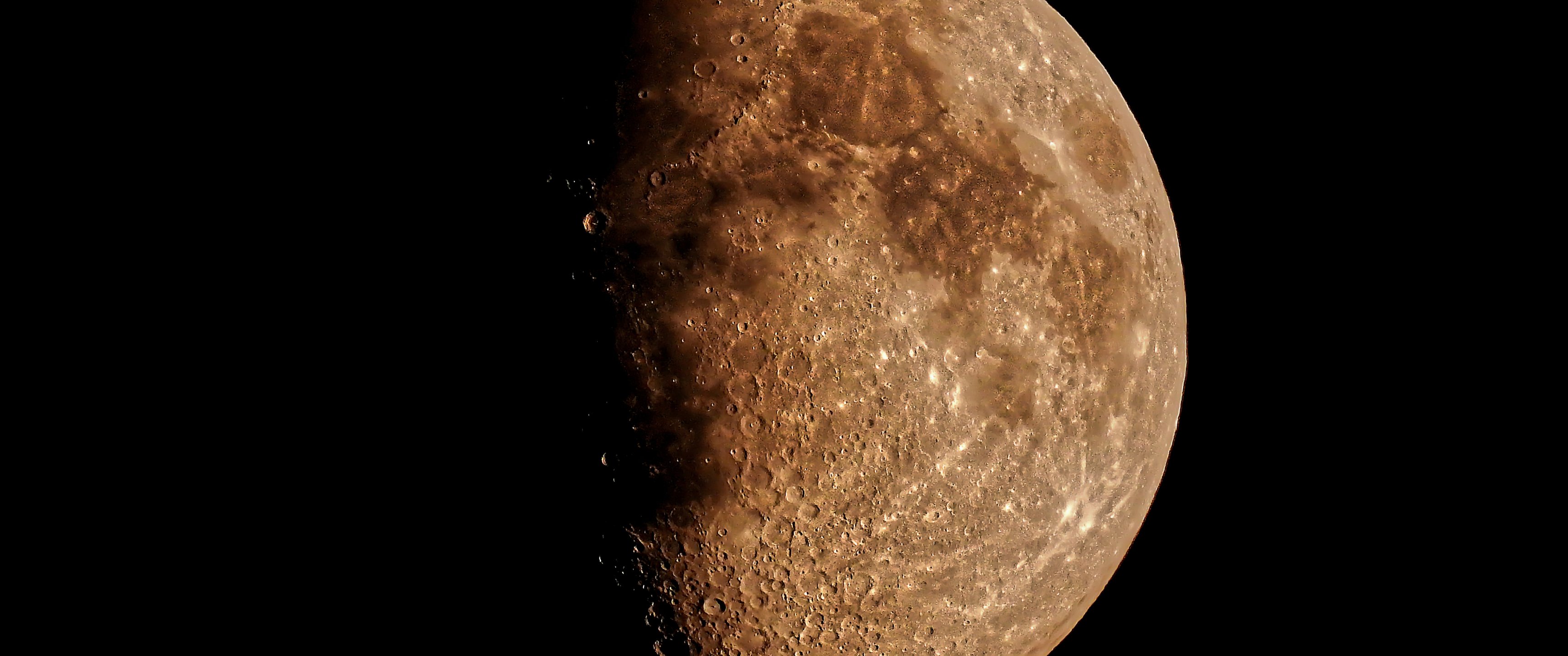 Обои: планета, луна, космос, черный фон - 3440x1440