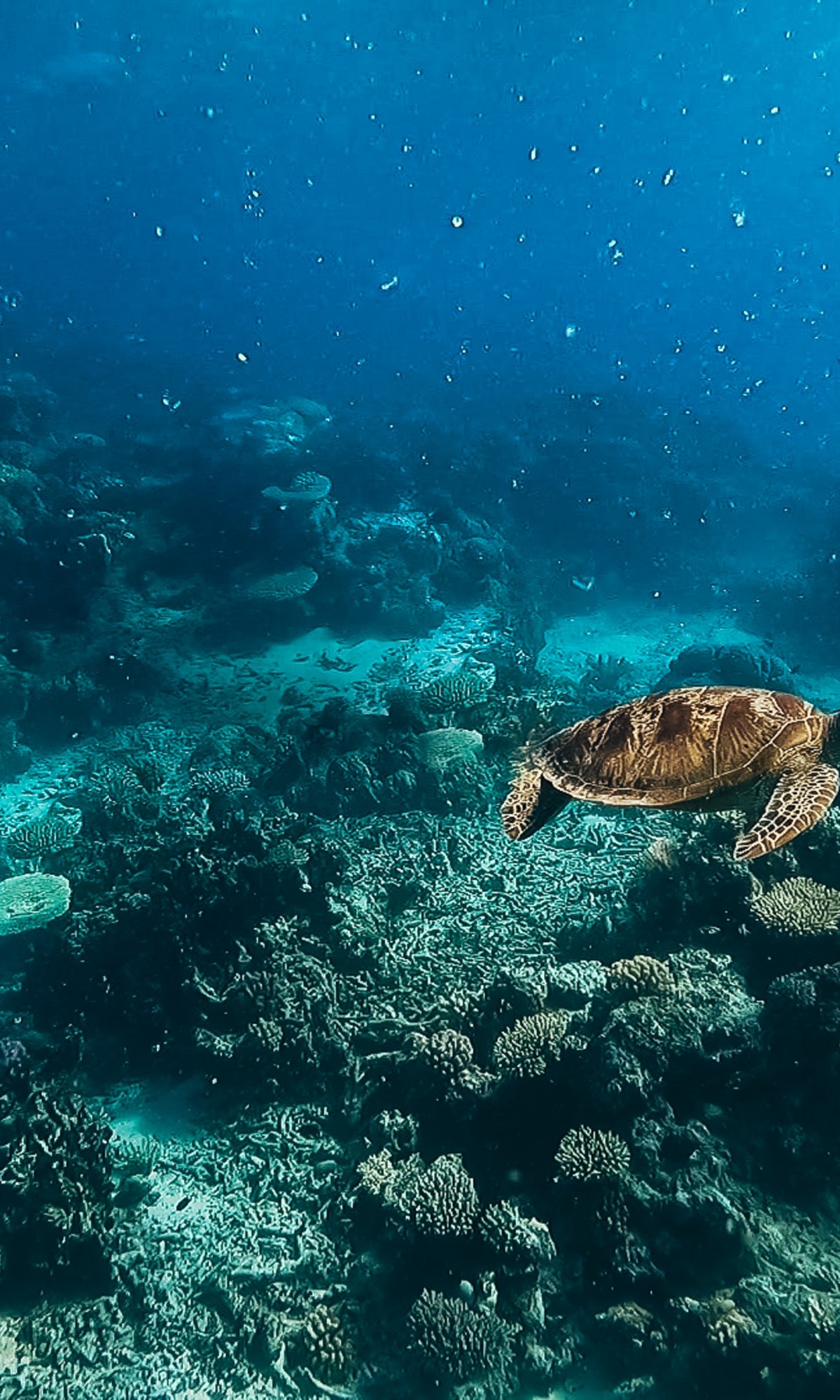 Обои: черепаха, подводный мир, аквалангист, вода, глубина, кораллы - 1200x2000