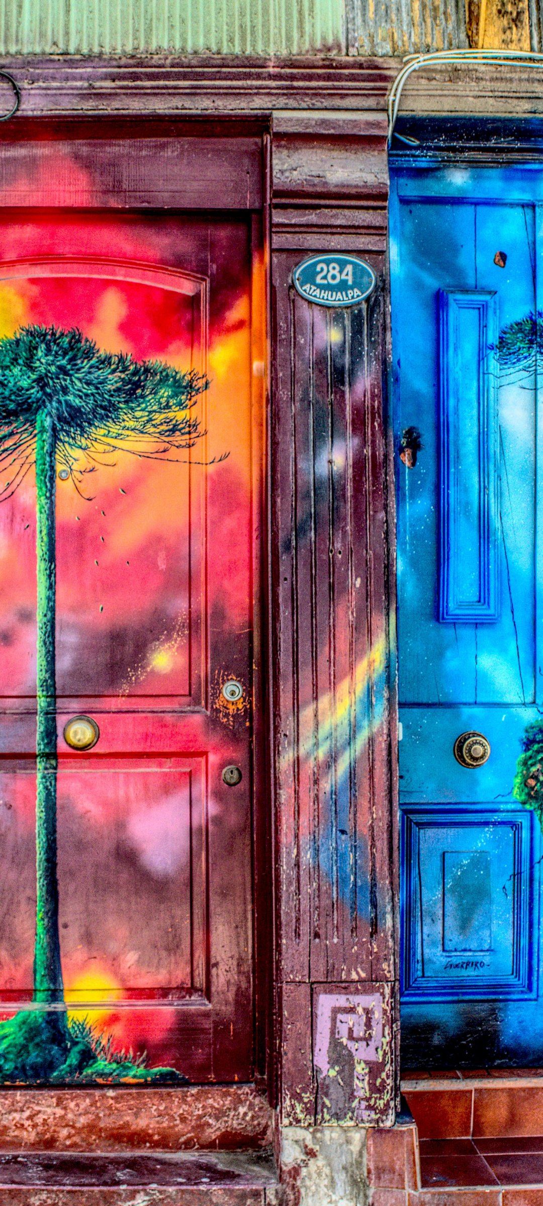 Обои: двери, арт, уличная живопись, дерево - 1080x2400