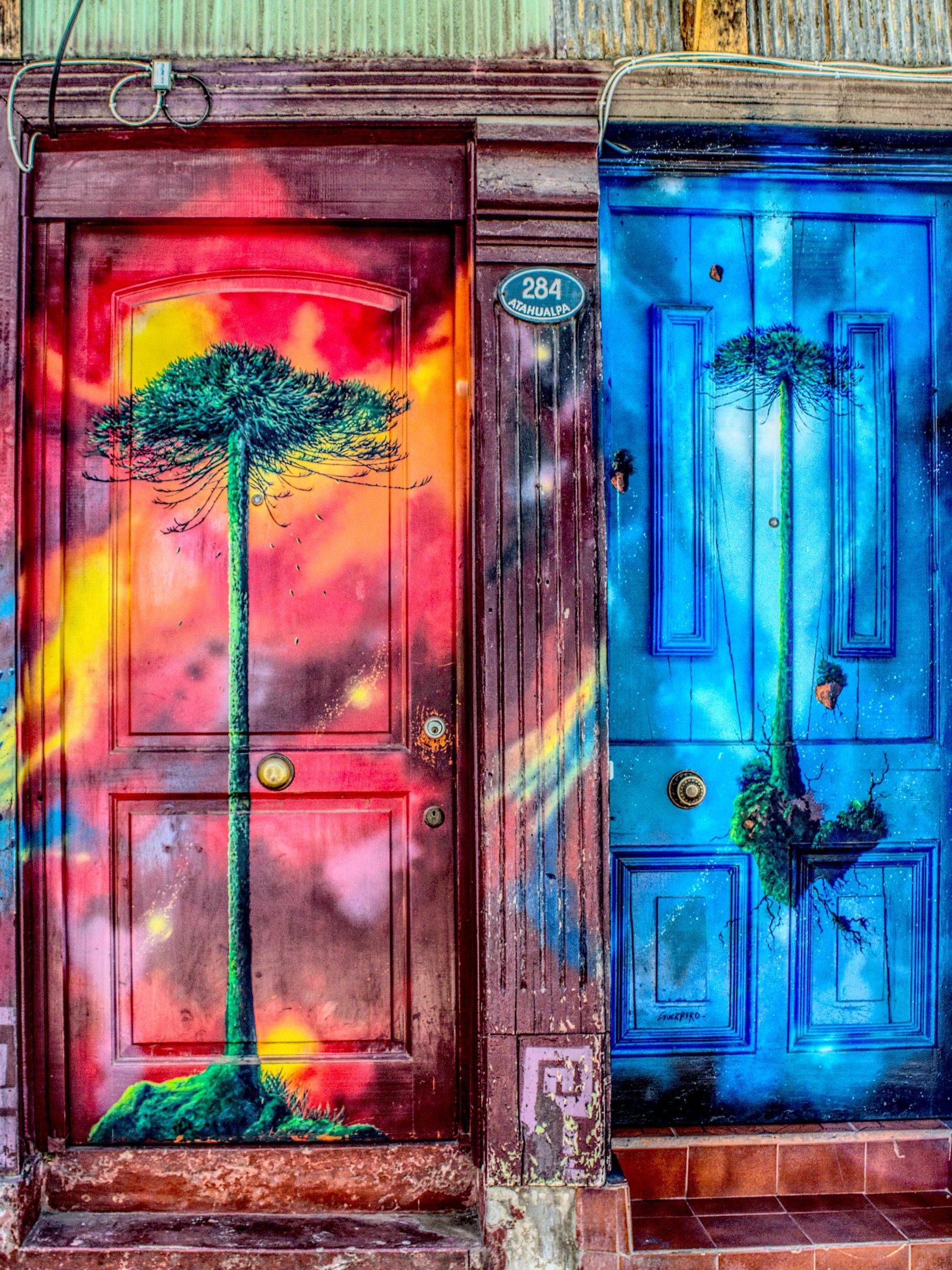 Обои: двери, арт, уличная живопись, дерево - 1620x2160