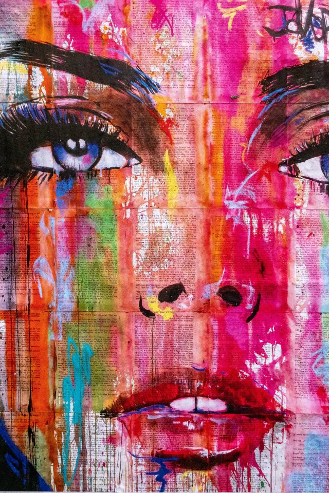 Обои: девушка, рисунок, холст, глаза - 640x960