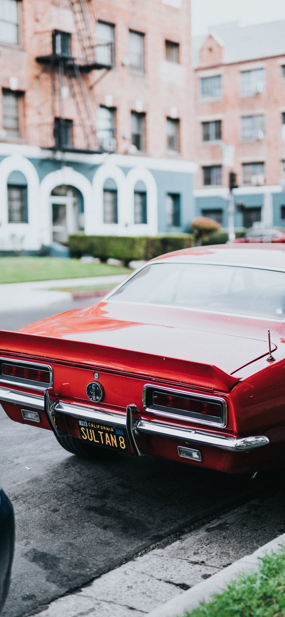 Обои: машина, красная, улица, Америка, парковка - 1125x2436