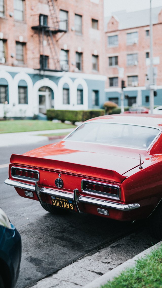 Обои: машина, красная, улица, Америка, парковка - 640x1136