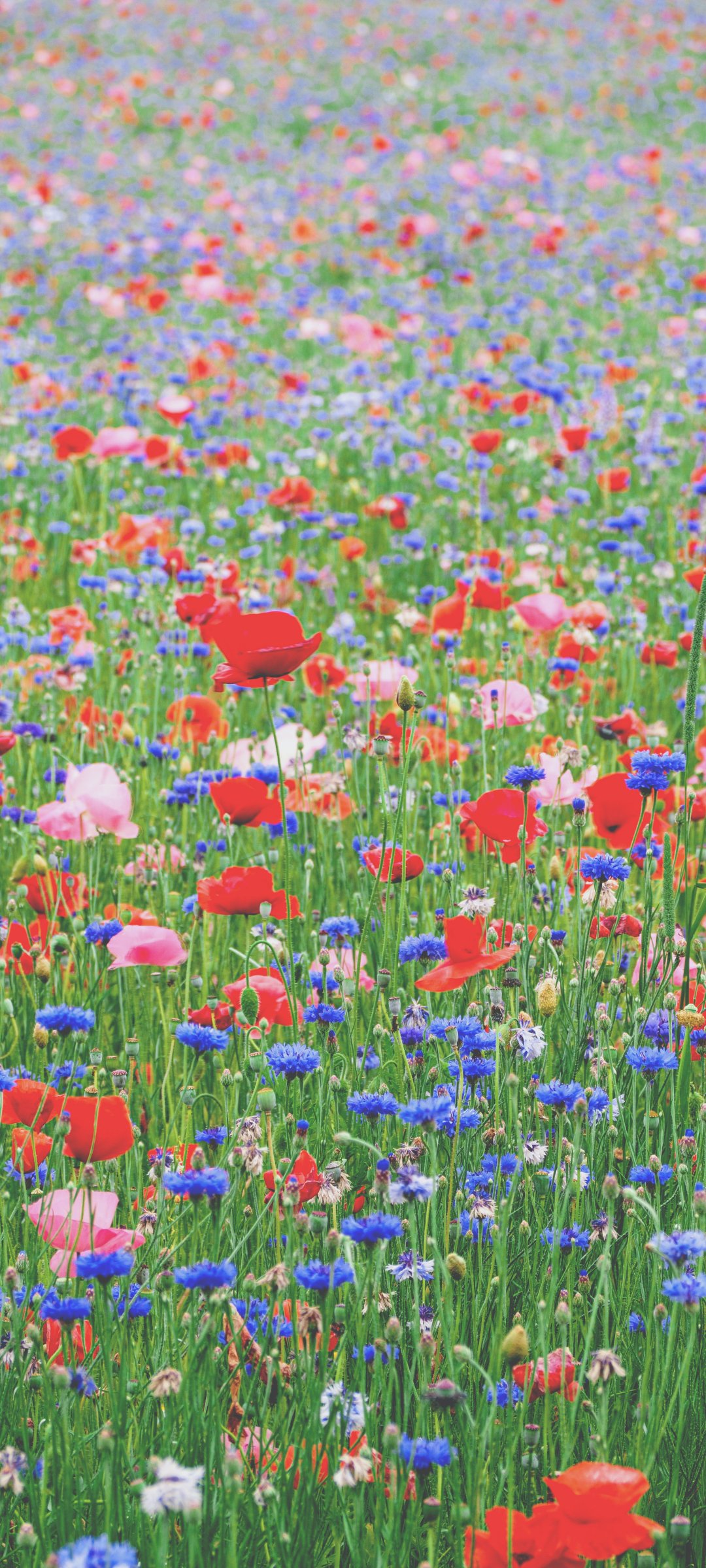 Обои: цветы, лето, поле, красные цветы - 1080x2400